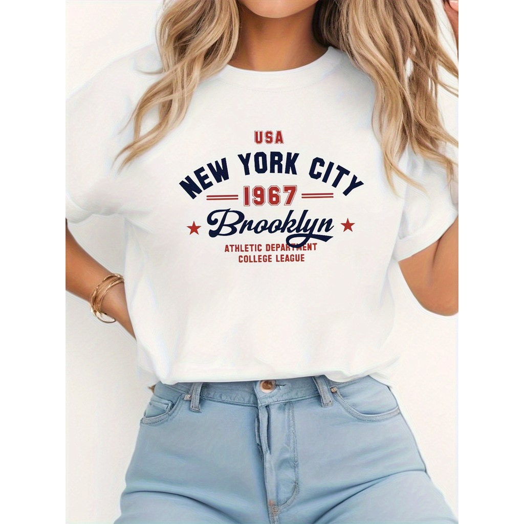 USA NEW YORK CITY 1967 Brooklyn Athletic Department College League Graphic Print Women'S Round Neck
