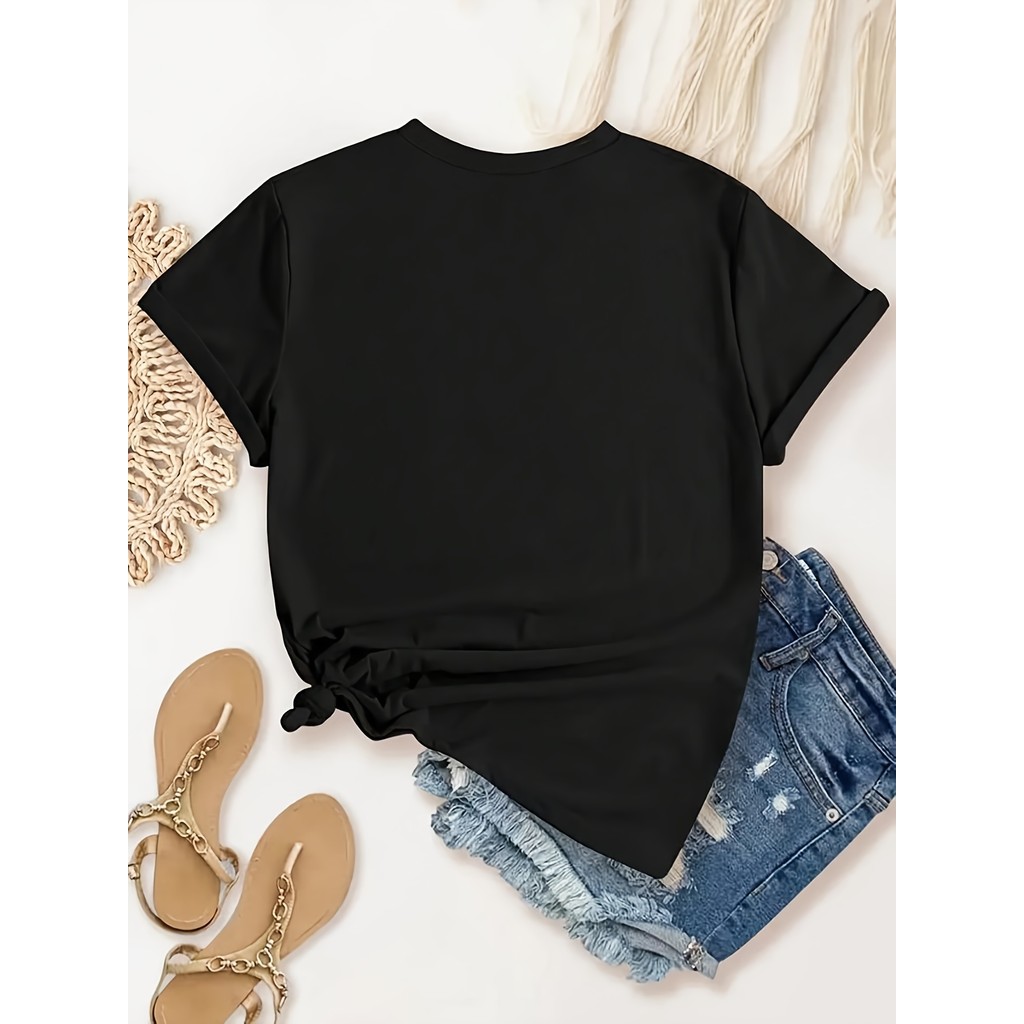 Women's Valentine's Day Graphic T-Shirt - Happy Valentine's Day Heart & Star Print, Black with Red L