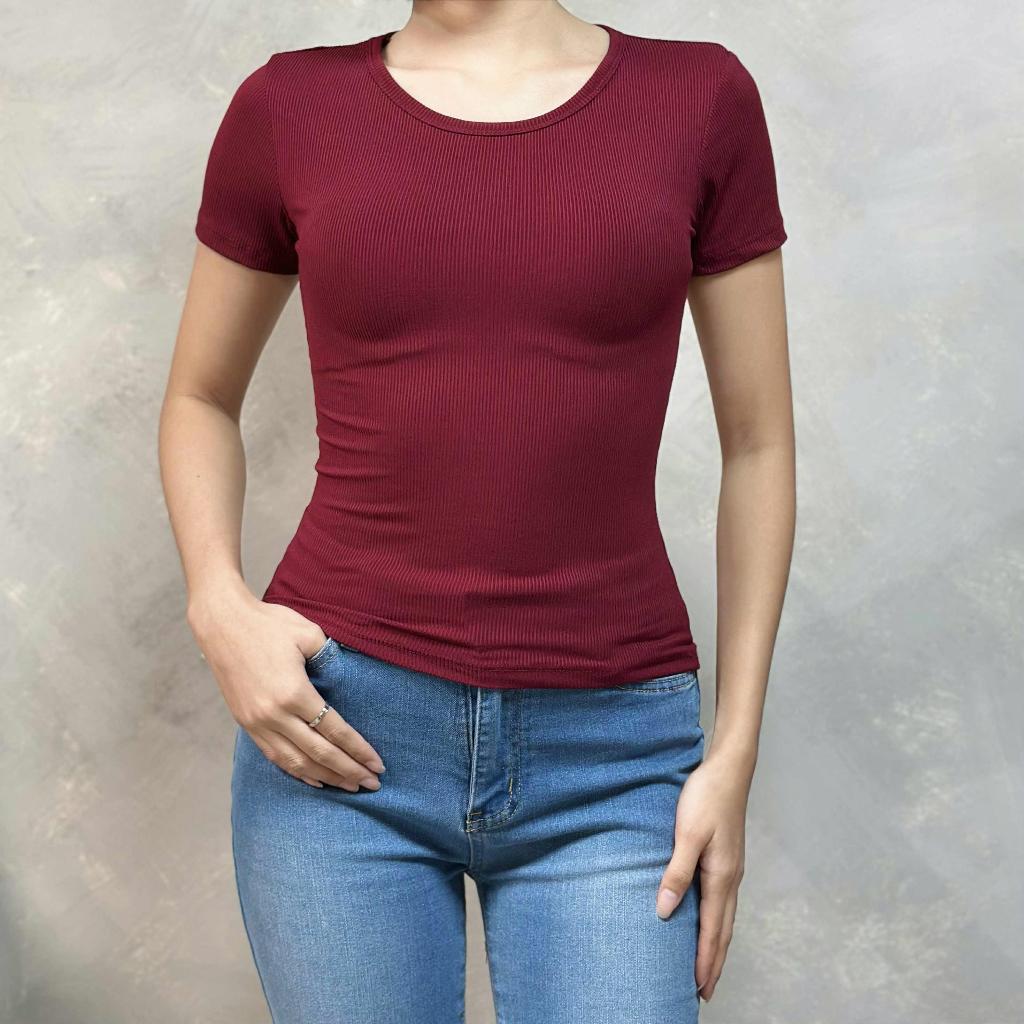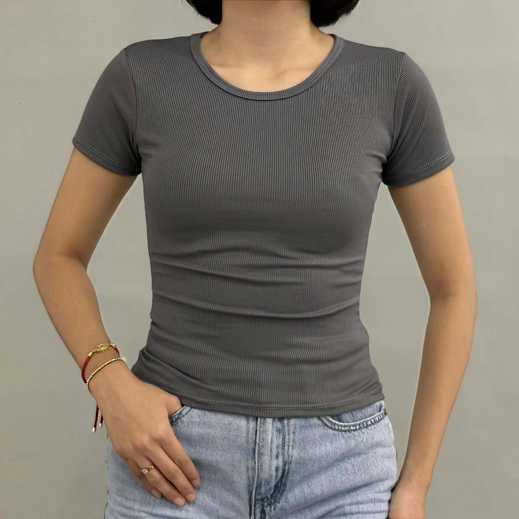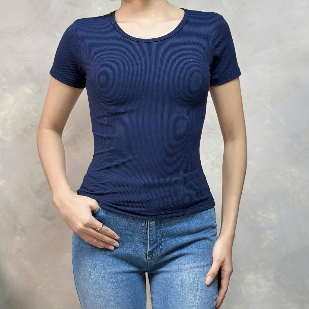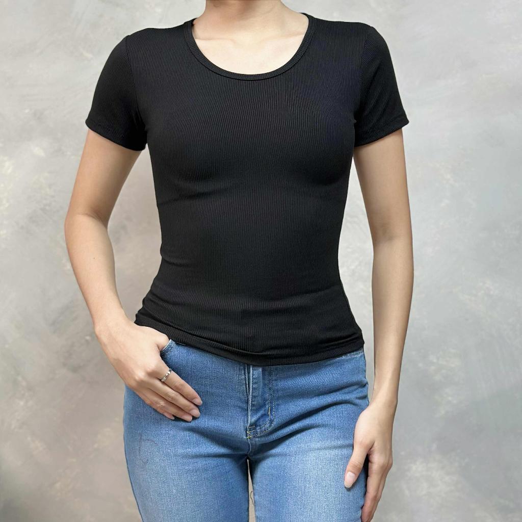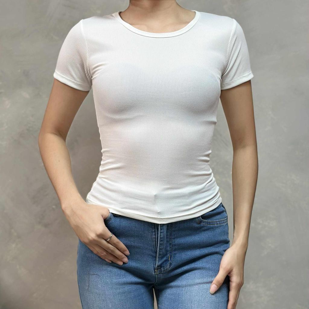 HEY ZOEY Lana Top | Basic Full Length Roundneck Everyday T-shirt Lightweight Cotton Knitted Fabric S