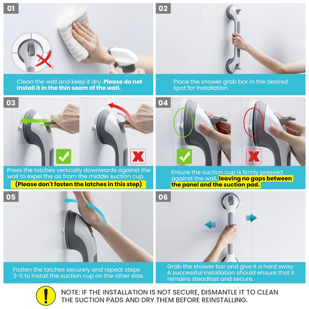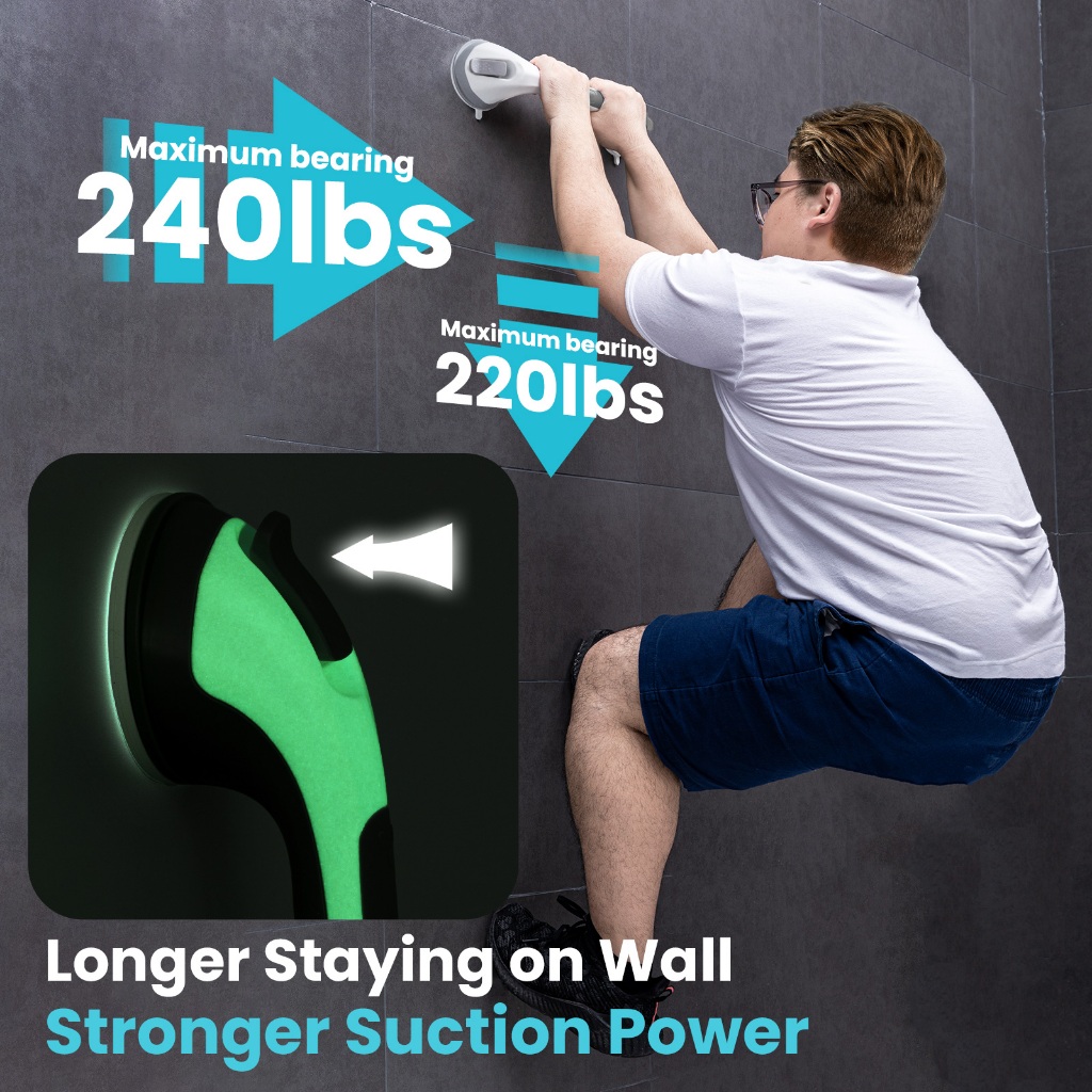 TAILI 2-Pack Glow in The Dark Shower Grab Bar No Drill Safety Handle for Elderly/Seniors Suction Waterproof Handrail for Bathroom, Bathtub, Toilet (42cm)