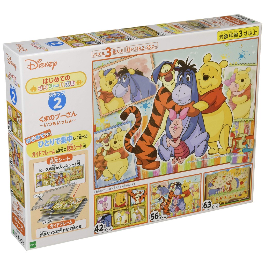 [Direct from Japan] EPOCH Beginner Jigsaw Puzzle Set: Disney & Character Themes (42/63/81 Pieces) - 3 Puzzle Options with Guide Frame for Ages 3+