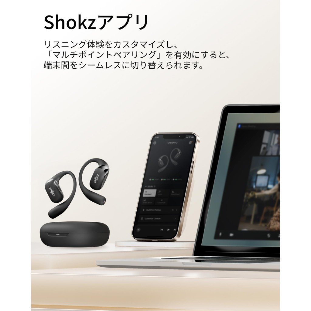 [Direct from Japan] Shokz OpenEar Wireless Bluetooth Earbuds - OpenFit 2 Series with 48 Hours Total Playtime, Bluetooth 5.4, Air Conduction Technology, Automatic Pairing, Integrated Microphone, Lightweight Design (9.4g), IP55 Waterproof, Fast Charging, Ha