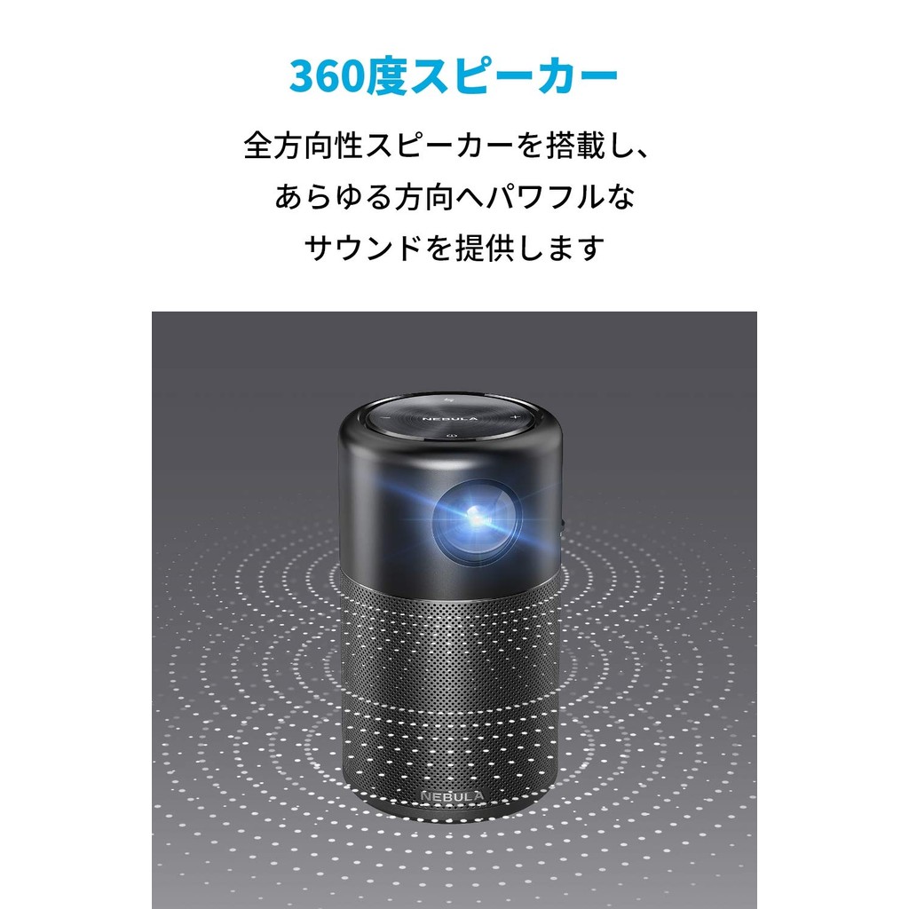 [Direct from Japan] Anker Nebula Capsule Portable Android Projector with 360° Speaker - 100 ANSI Lumens DLP for Home Entertainment - Black