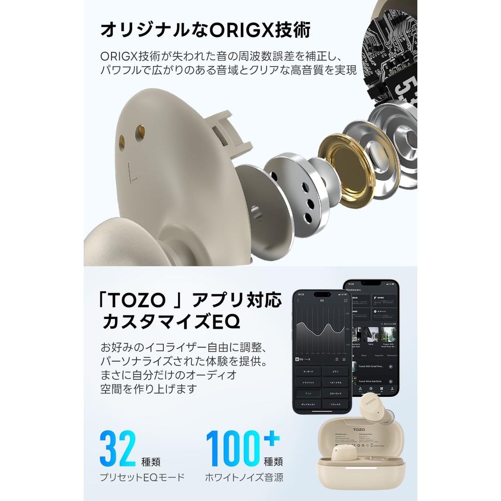 [Direct from Japan] TOZO A1-Mini Wireless Earbuds 2025 - Ultimate Sound Experience, Compact & Lightweight, Bluetooth 5.3, IPX5 Waterproof, 32 Hours Playback, App Compatibility, Custom EQ Mode, iOS/Android Support, Voice Assistant Enabled, Instant Connecti