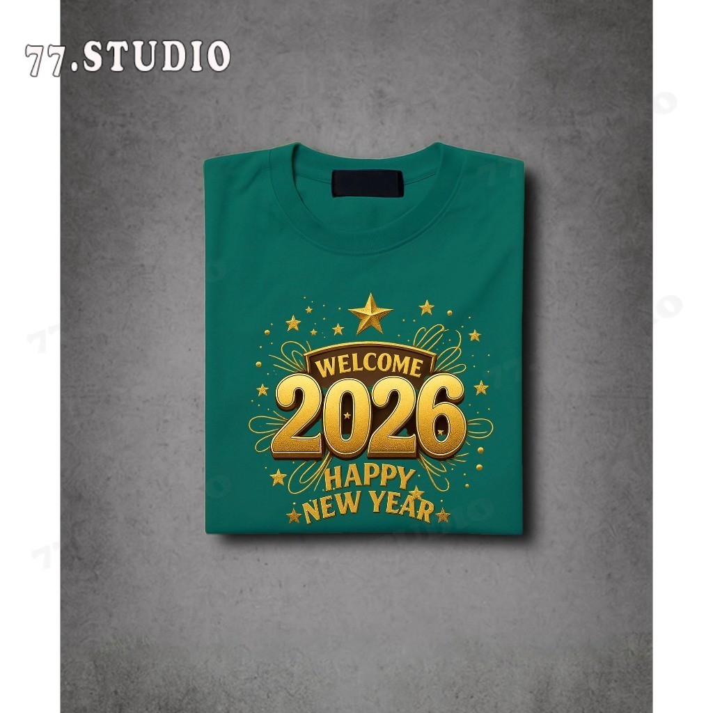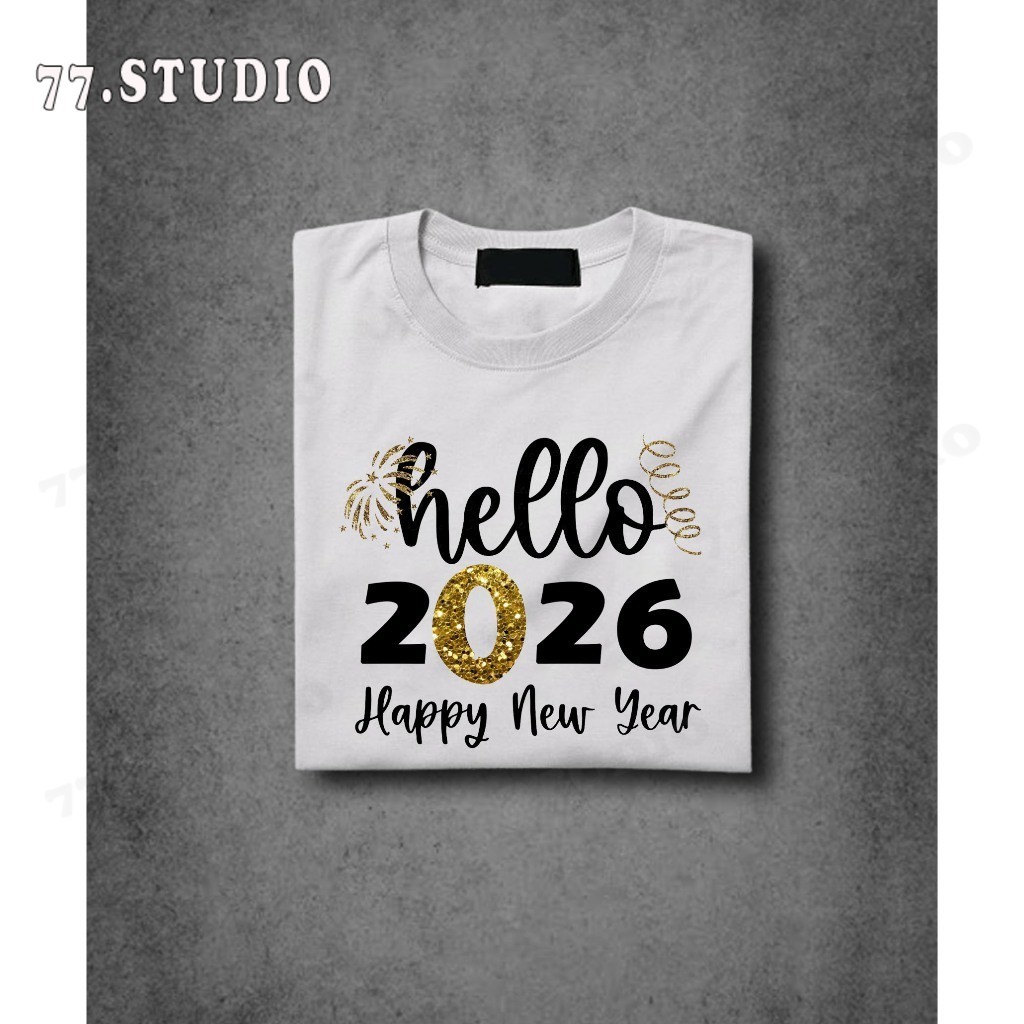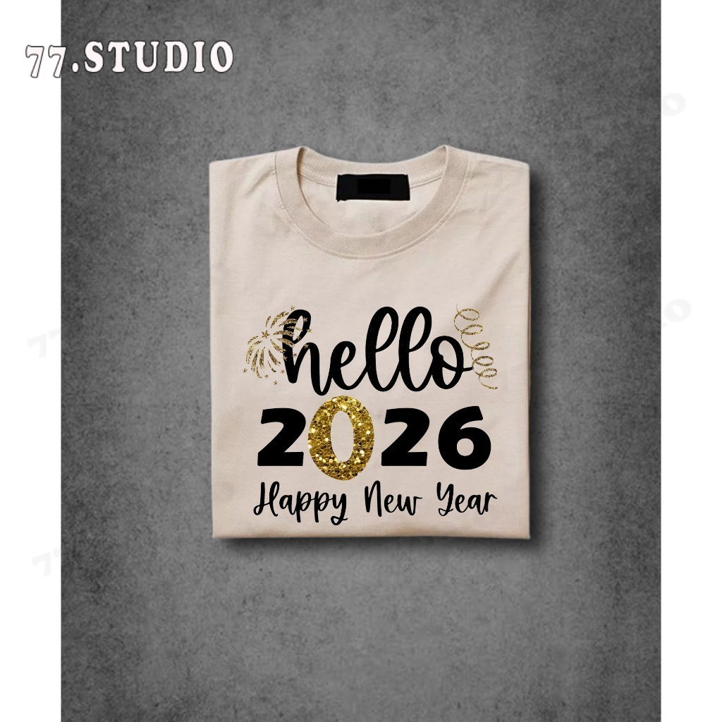 FAMILY T-Shirt 2026 New Year and Christmas T-Shirt Unisex Printed short-sleeved top, 100% cotton.