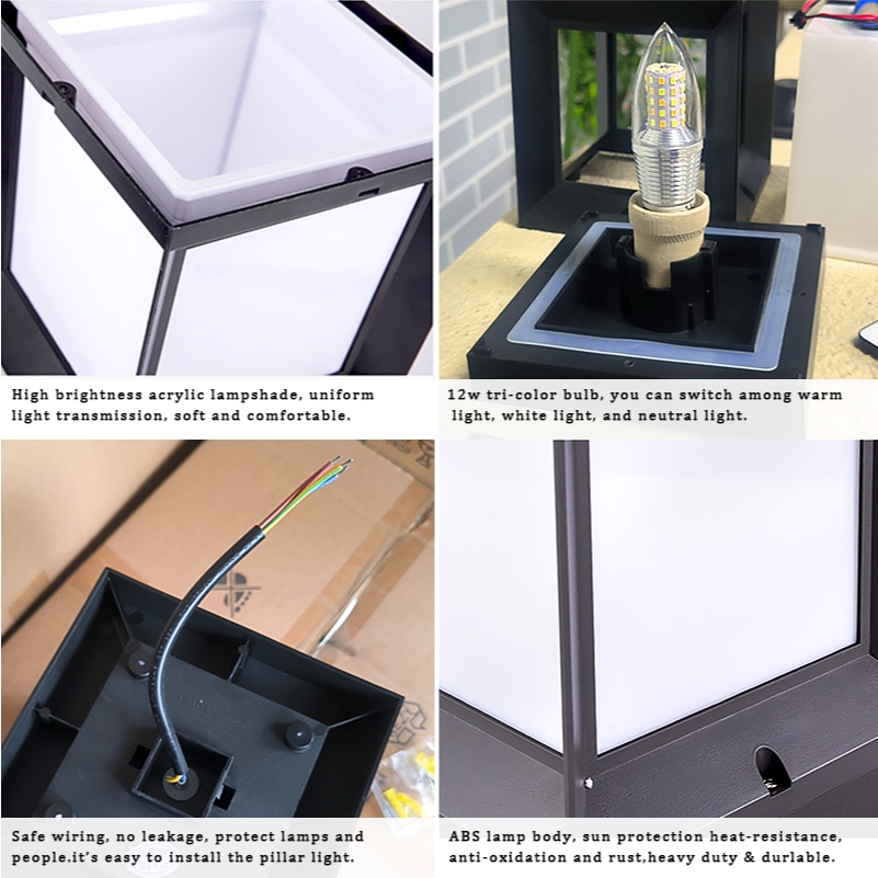 Led Pillar Light Outdoor Solar Post Gate Lighting Column Modern Fence 220V Warm Outside Large Pole Lamp Cap Walkway