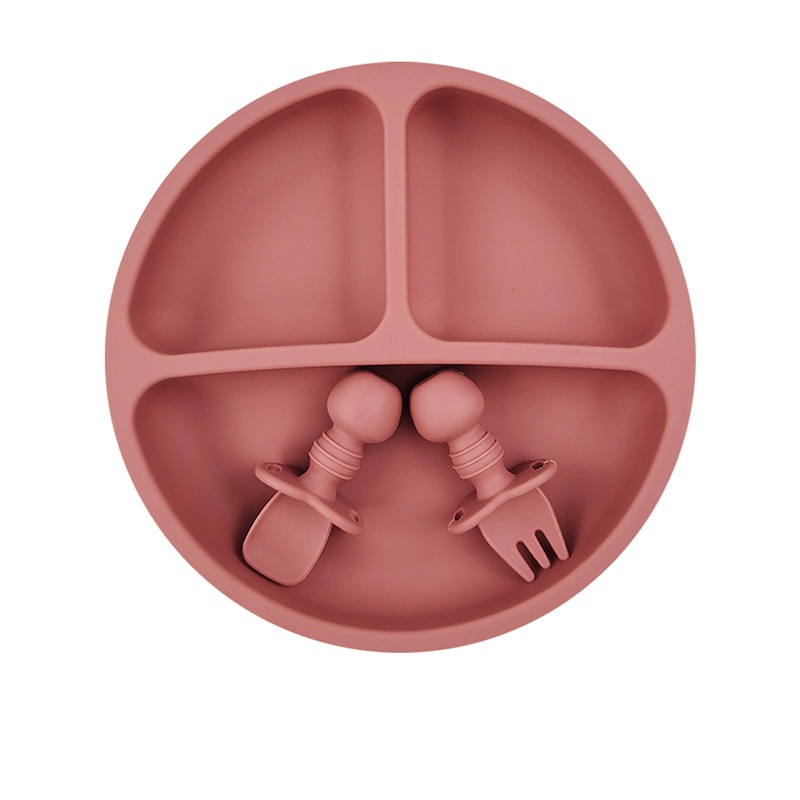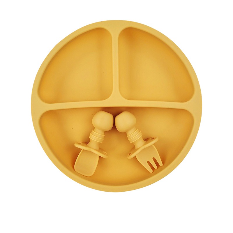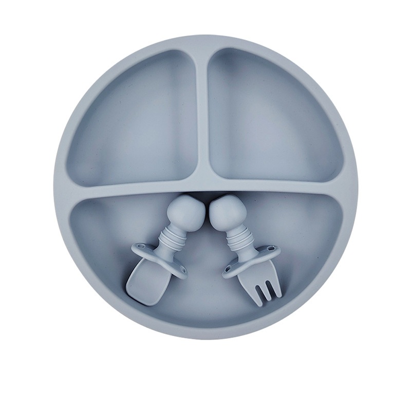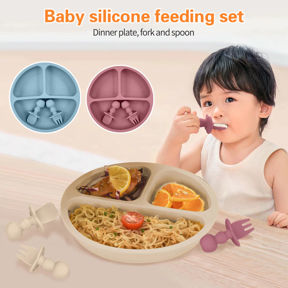 Baby Feeding Bowl Silicone dining plate Spoon Fork Set Training Kids Food Tableware 3Pcs/Set