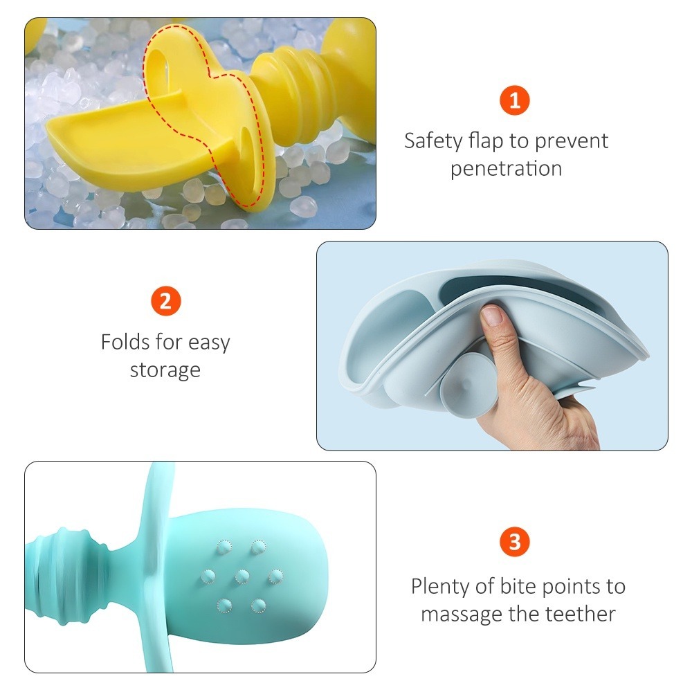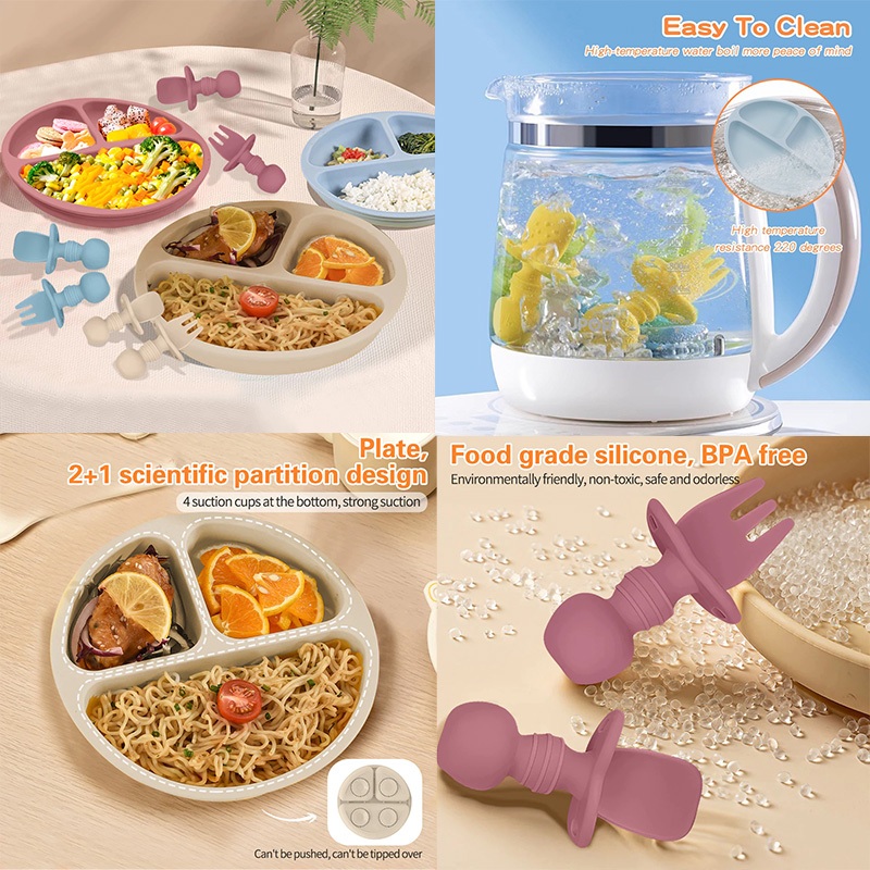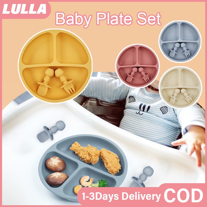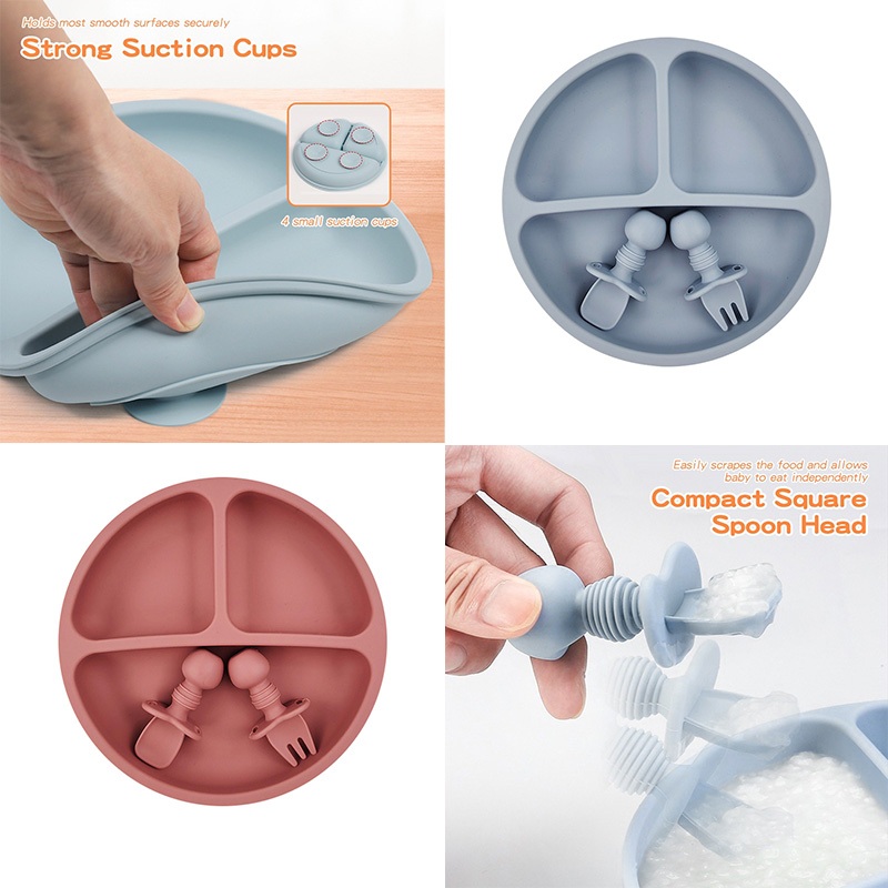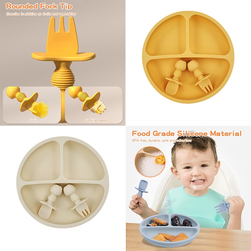Baby Feeding Bowl Silicone dining plate Spoon Fork Set Training Kids Food Tableware 3Pcs/Set