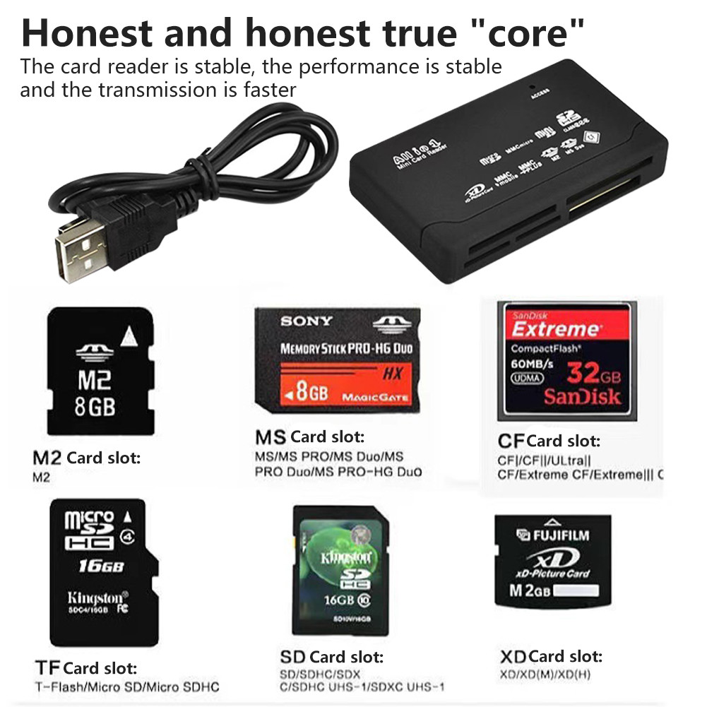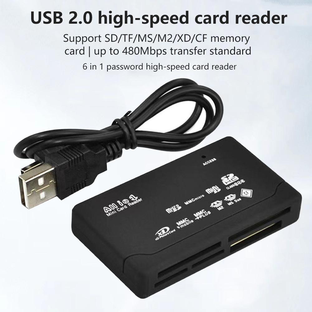 6-IN-1 Universal USB Reader USB 2.0 All In One Memory Card Reader Extension Hub Mini External SD TF MS M2 XD CF Memory Stick