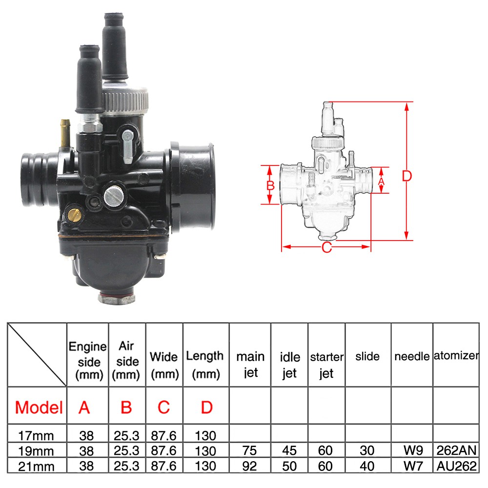 PHBG DS AD Motorcycle Carburetor Carb 17mm 19mm 21mm Dellorto Replica For Yamaha KTM Puch Zuma BWS100