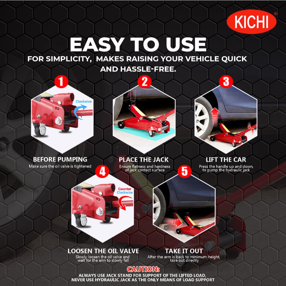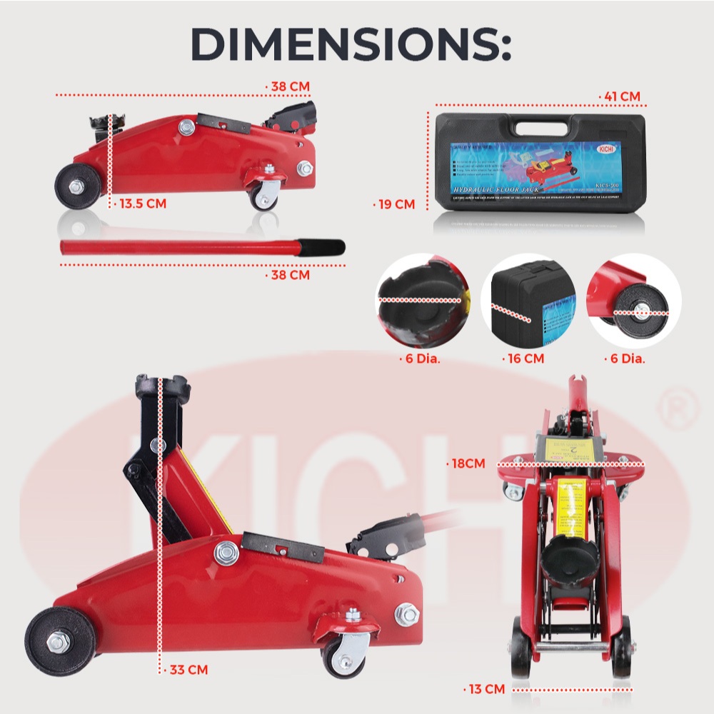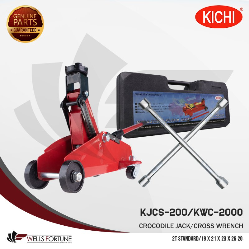 KICHI 2 TONS CROCODILE HYDRAULIC FLOOR JACK AND CROSS WRENCH STANDARD WITH PLASTIC CARRYING CASE