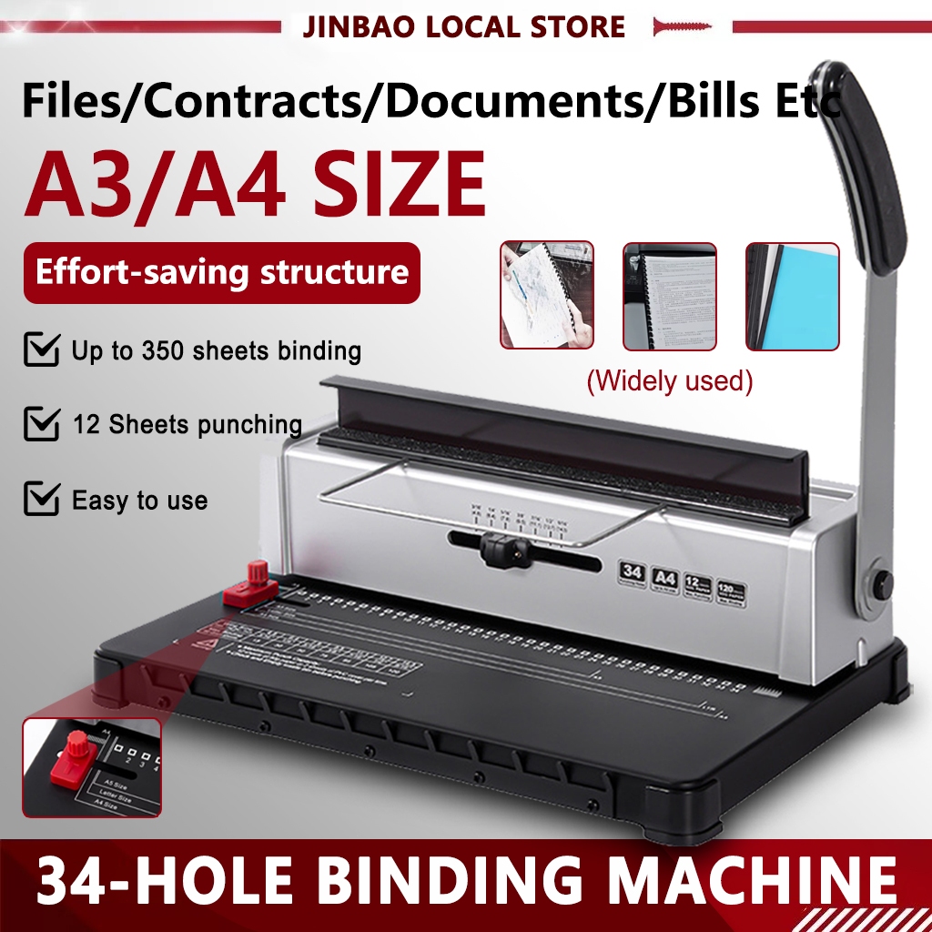 34 Hole Comb Binding Machine A3/A4 Size Office Heavy Duty Binding Machine (12 Sheet Punch Capacity)