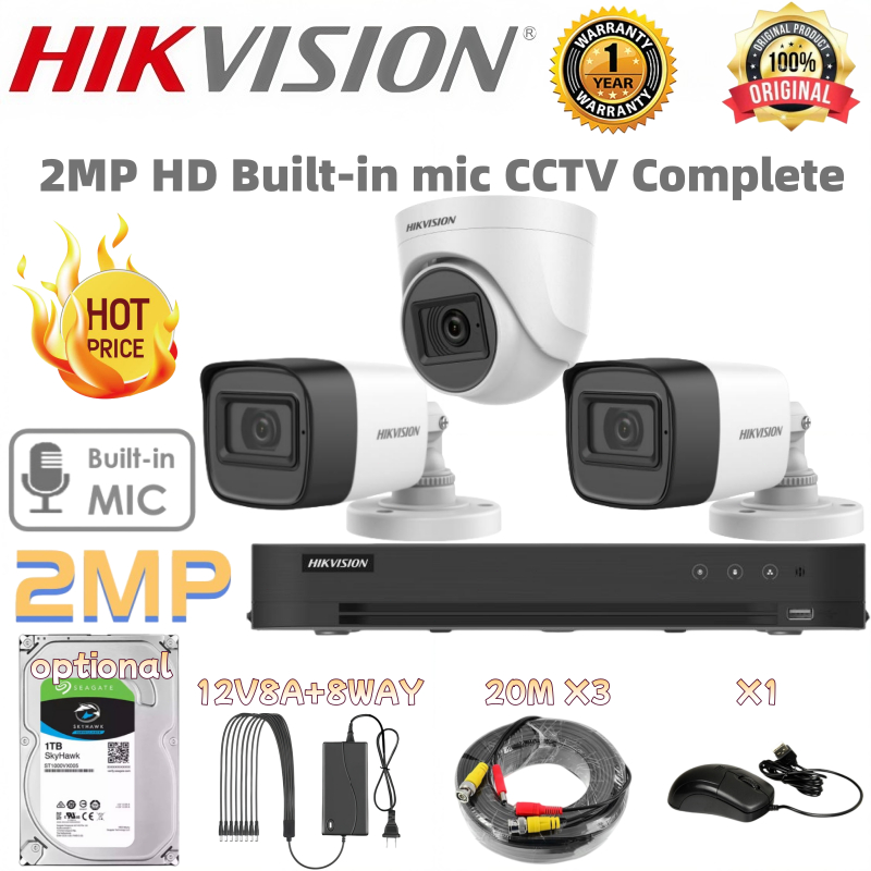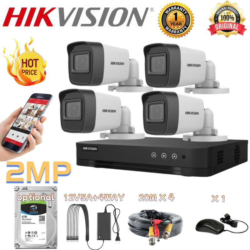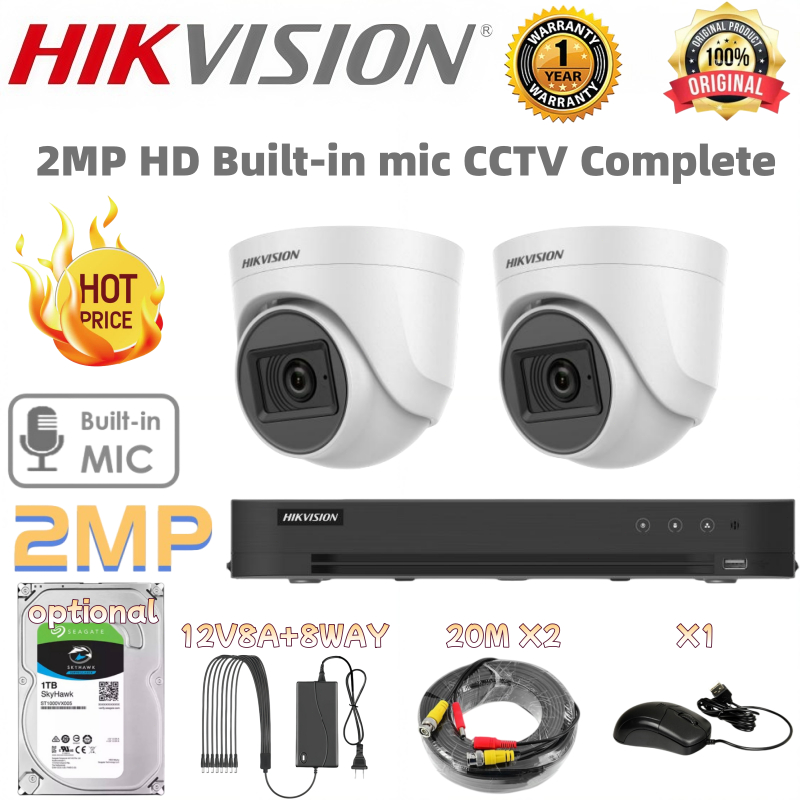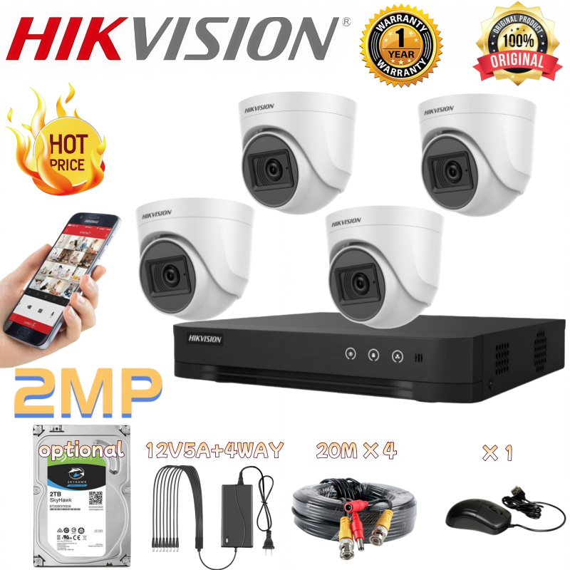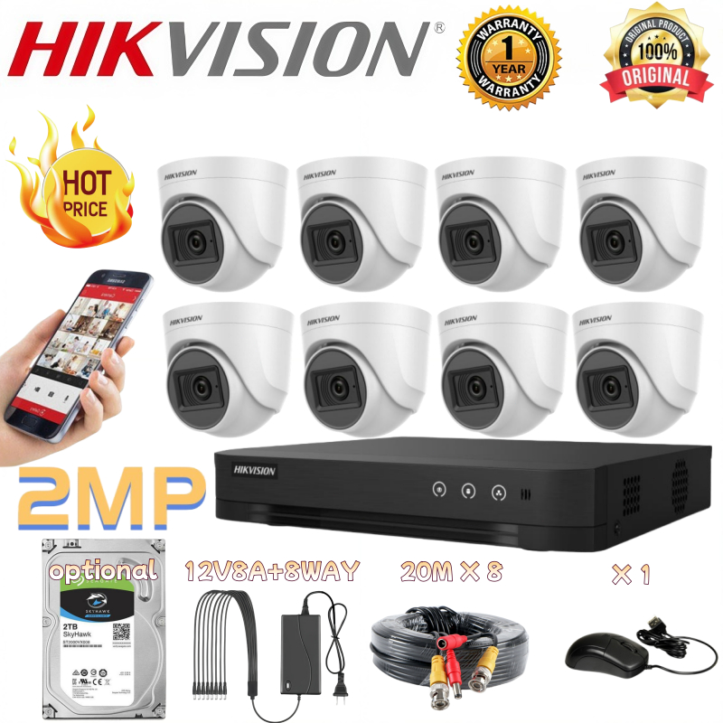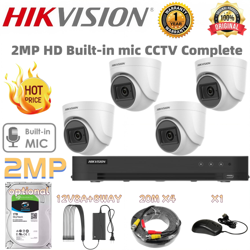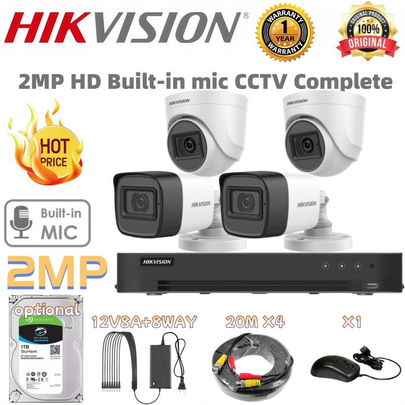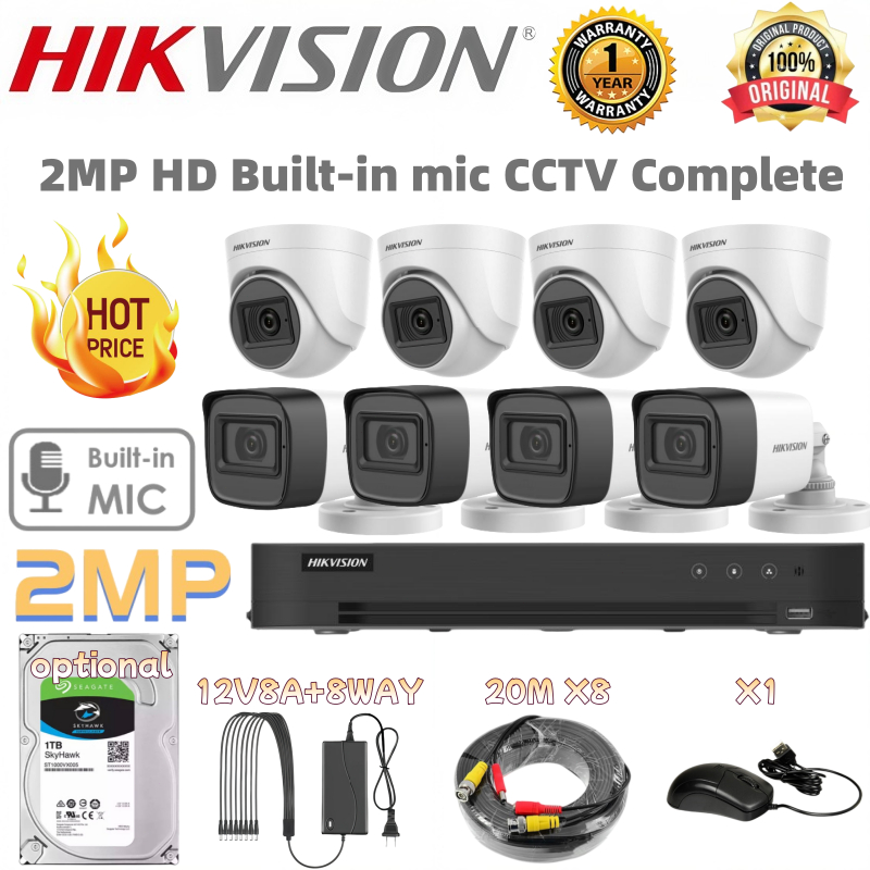 Hikvision 4/8CH CCTV Kit 2MP HD Built-in mic CCTV Complete CCTV With Remote monitoring CCTV Package