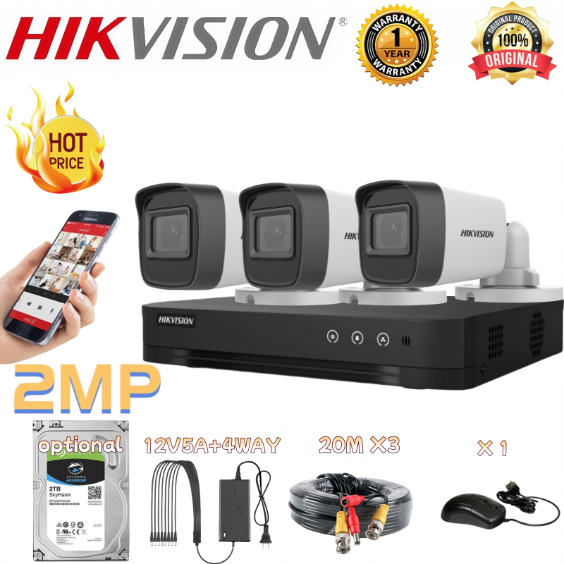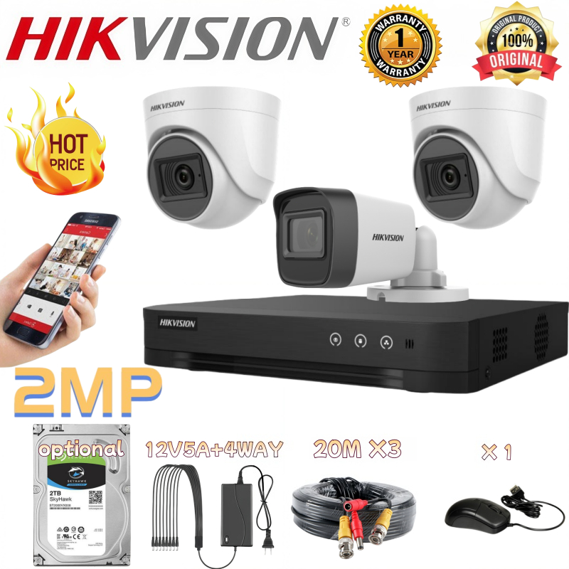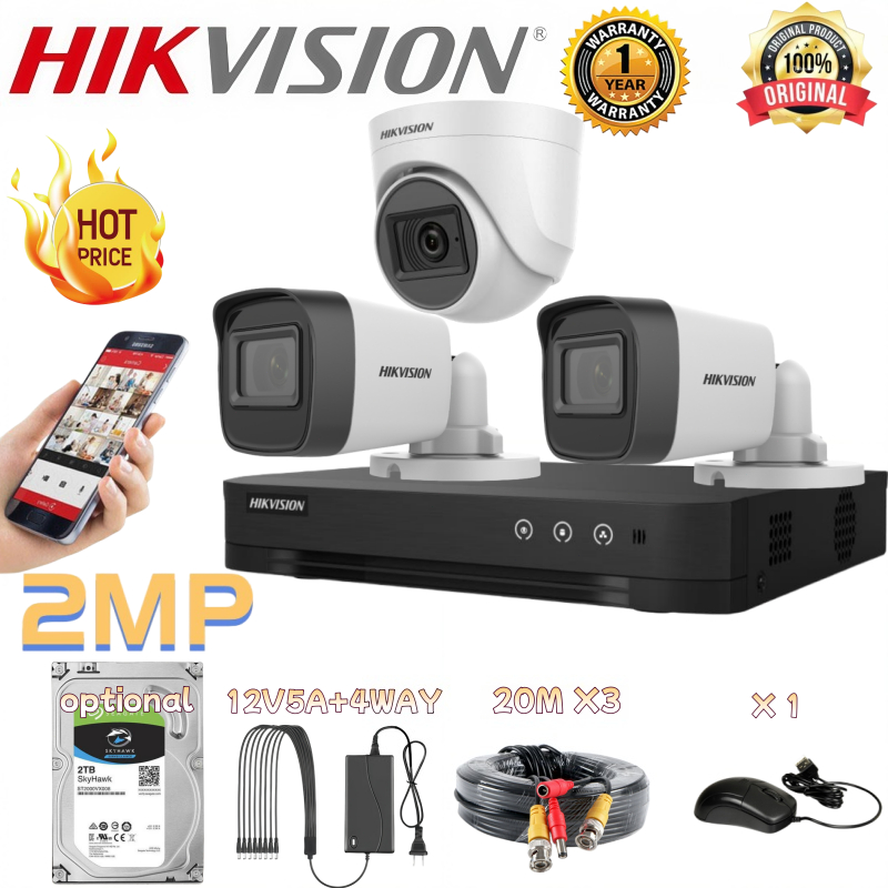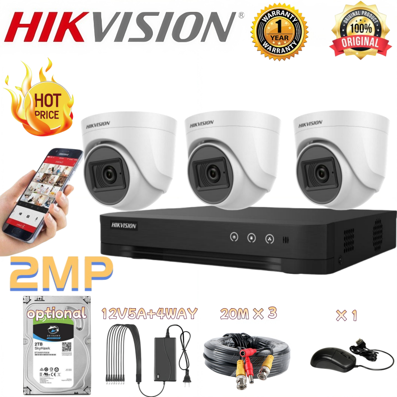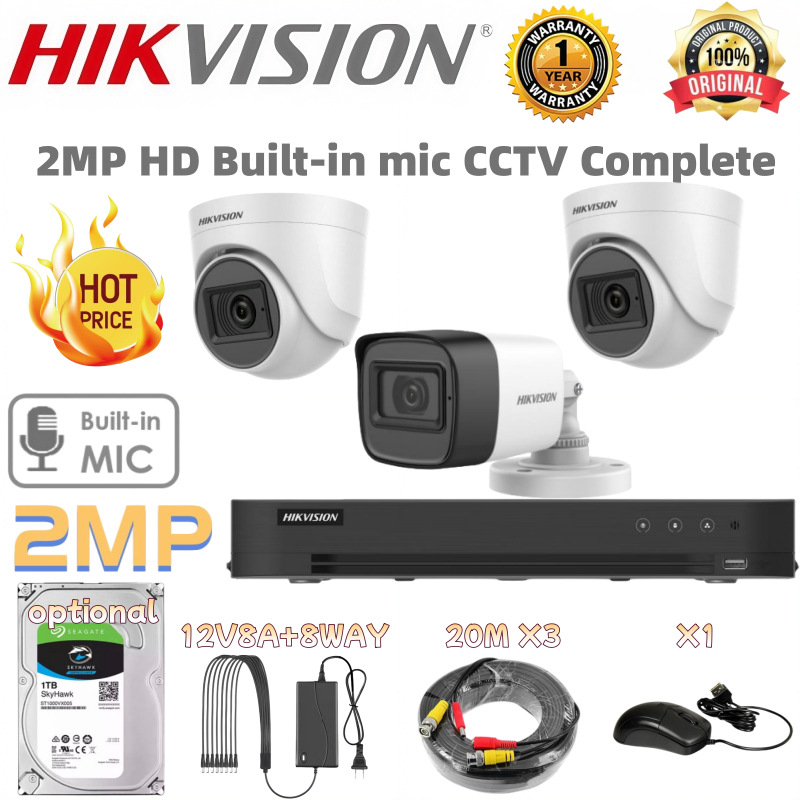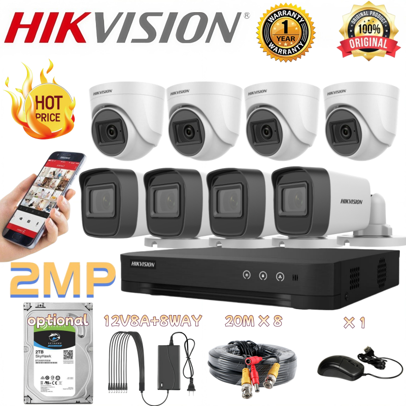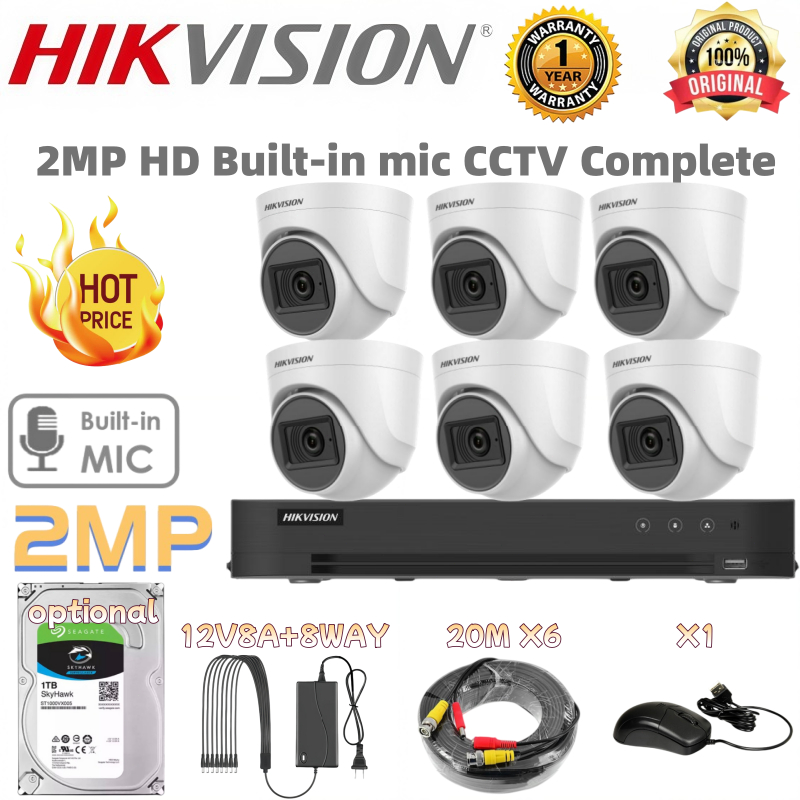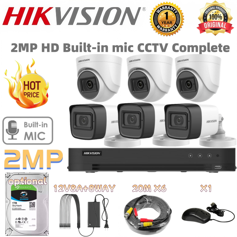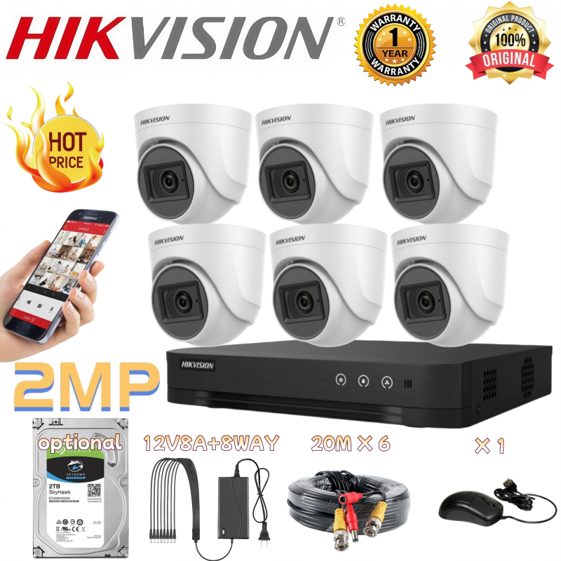 Hikvision 4/8CH CCTV Kit 2MP HD Built-in mic CCTV Complete CCTV With Remote monitoring CCTV Package