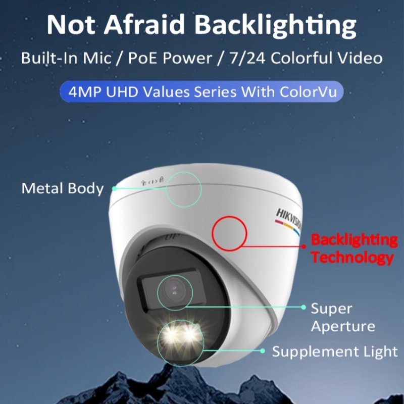 HIKVISION CCTV ColorVu 2MP IP Camera 24/7 Full Time Color Built-in Mic PoE Outdoor Fixed Dome Audio