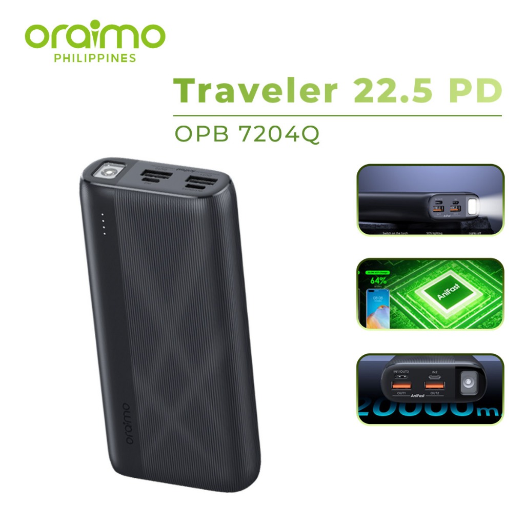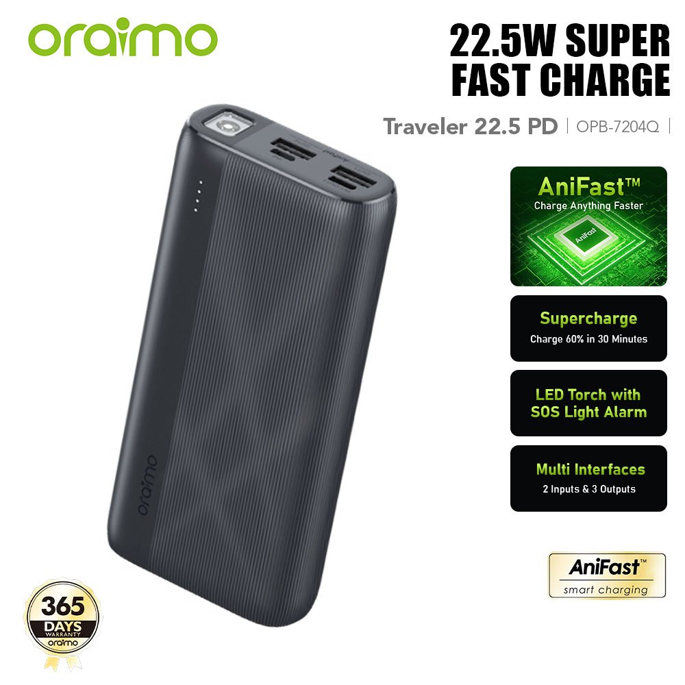 Oraimo OPB-7204Q 20000mAh Original PD 3.0 Powerbank PD22.5W Fast Charge Dual USB 3 Output
