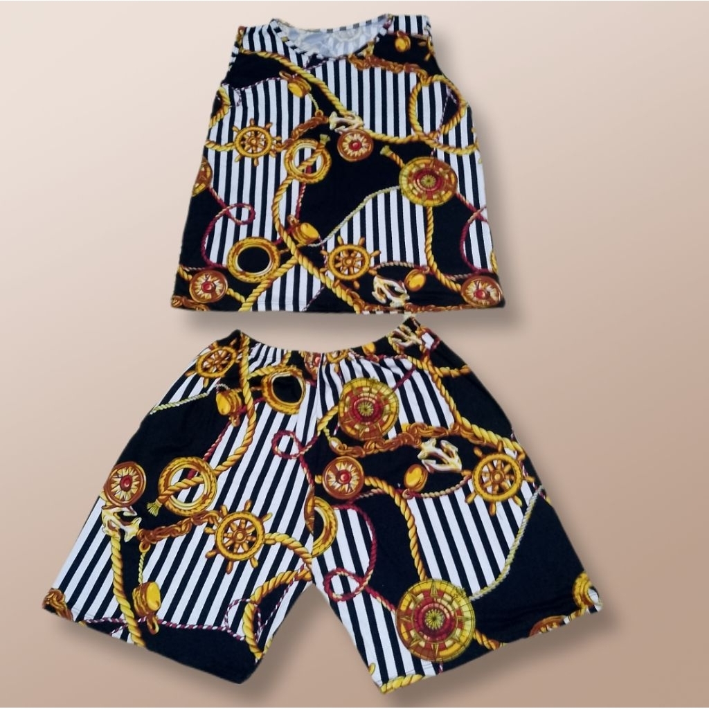 Bold Chains & Stripes Terno Set – Stretchable Cotton (Fits L to XL)