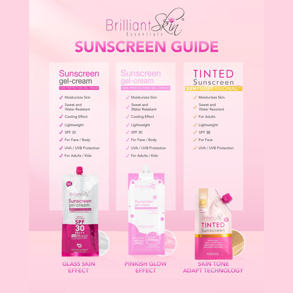 Brilliant Skin Sunscreen Gel Cream Classic 50g | Sunscreen Gel Cream Pink 50g | Tinted Sunscreen 20g