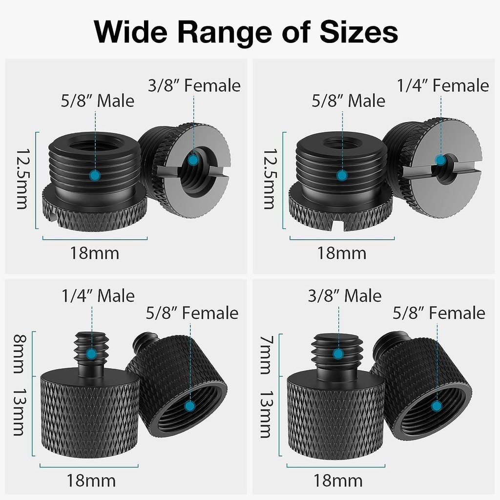 Mic Stand Adapter Set 8 pieces Metal Microphone Stand Screw Thread Adapter 5/8 Female to 3/8 Male 3/8 Female to 5/8 Male 5/8 Female to 1/4 Male 1/4 Female to 5/8 Male Tripod Adapte