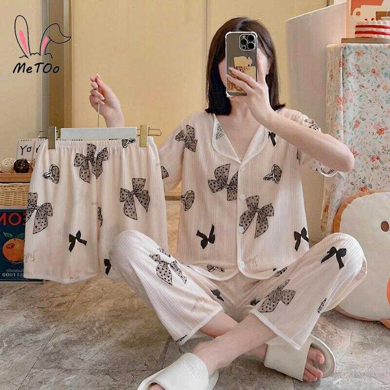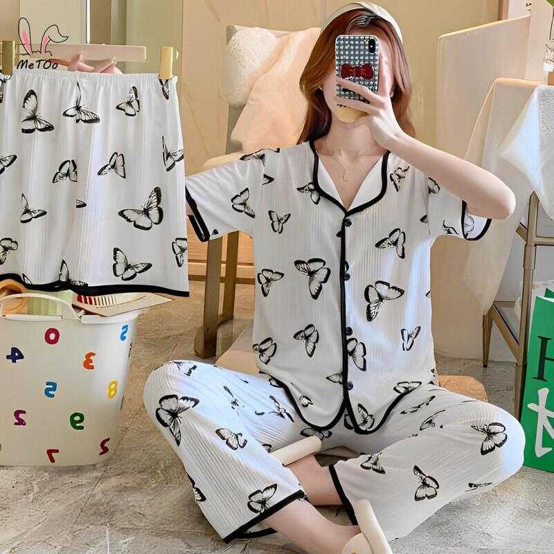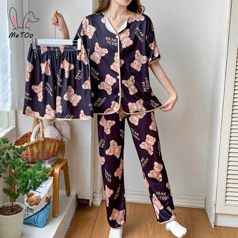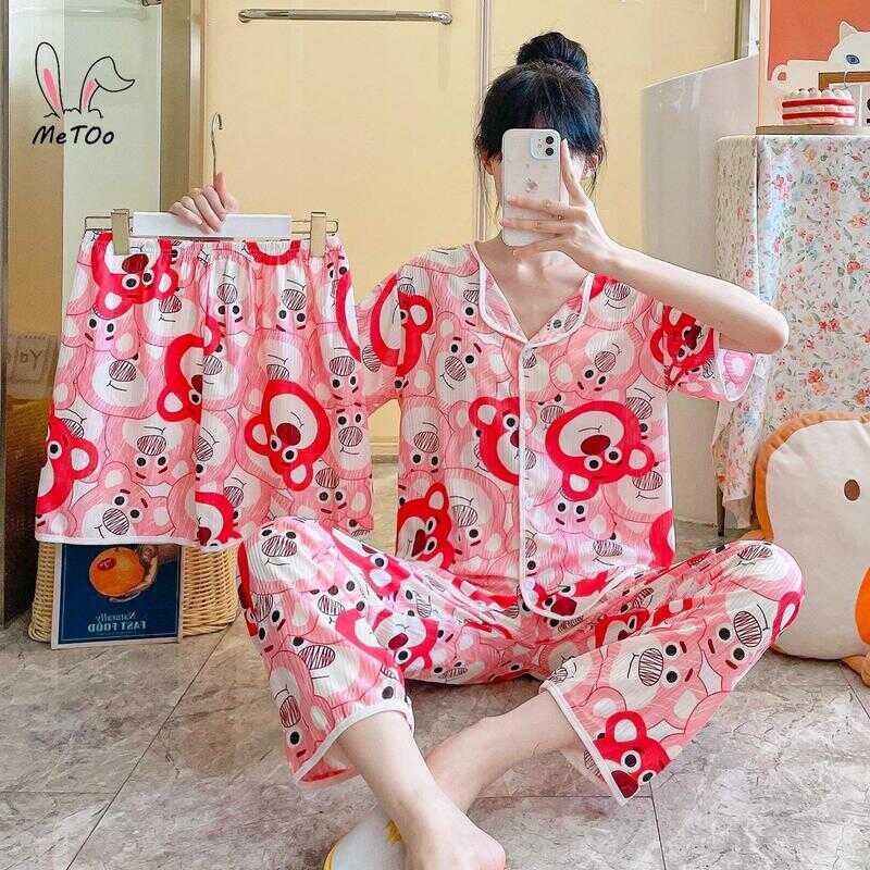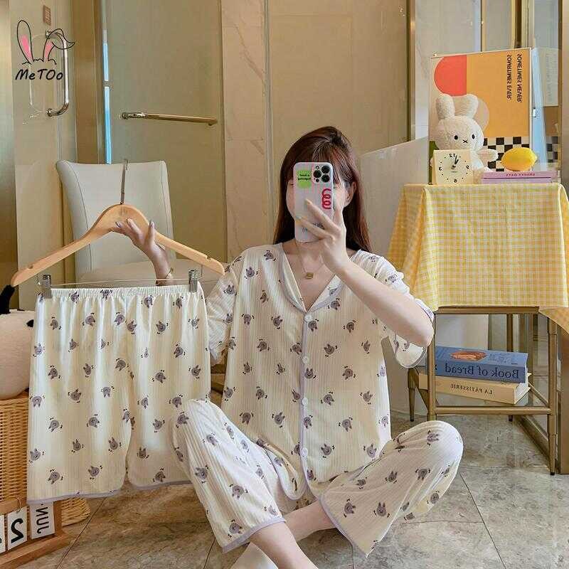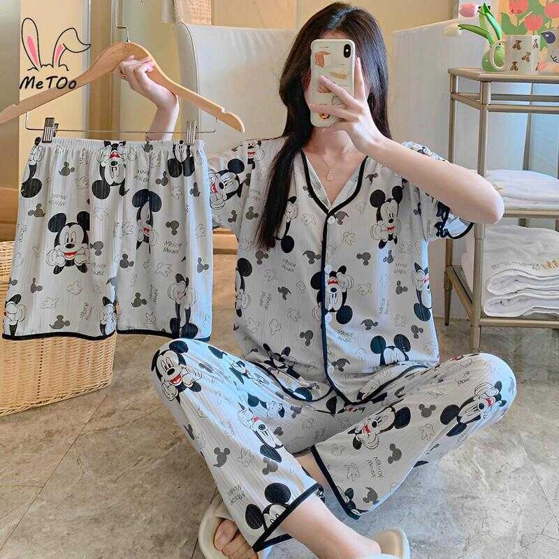 Metoo 3In1 Cotton Short Sleeve Cartoon Pattern Comfortable Pamas/Sleepwear For Women Loungewear