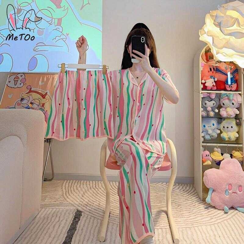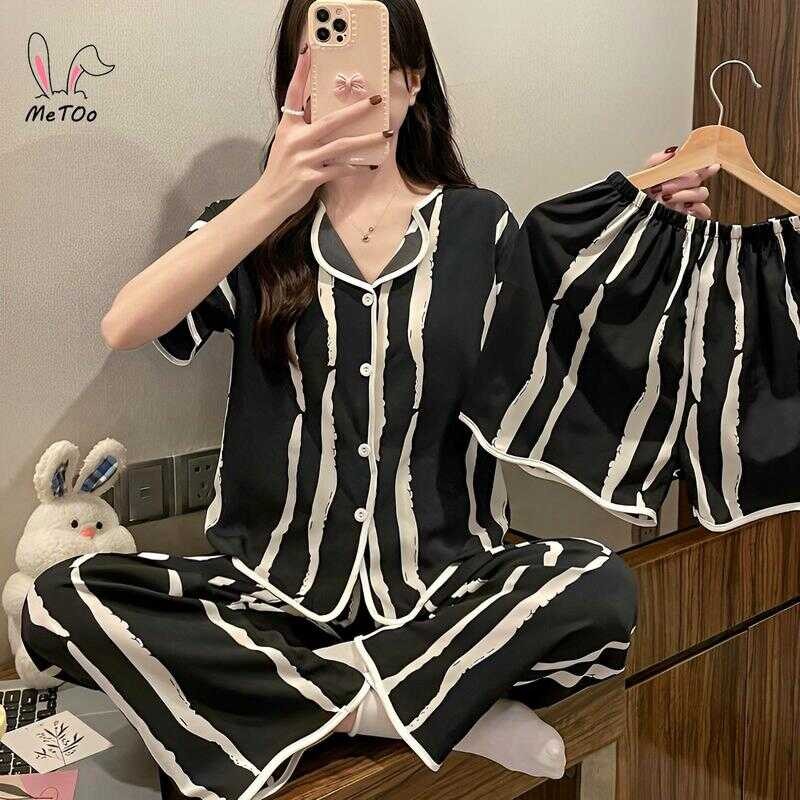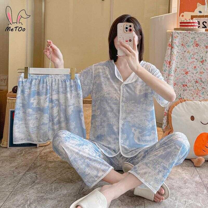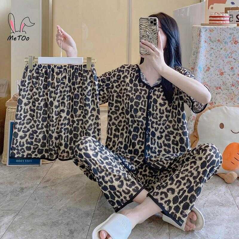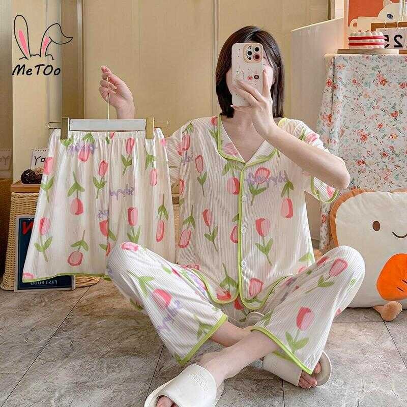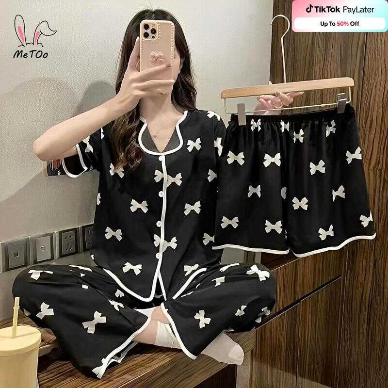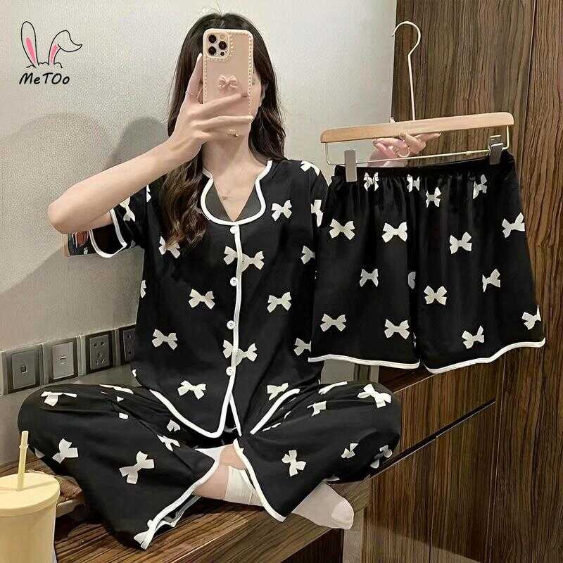 Metoo 3In1 Cotton Short Sleeve Cartoon Pattern Comfortable Pamas/Sleepwear For Women Loungewear