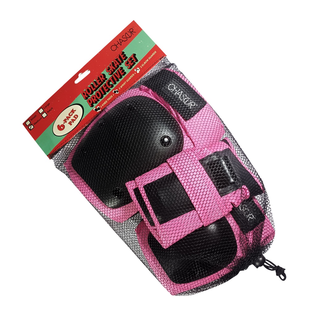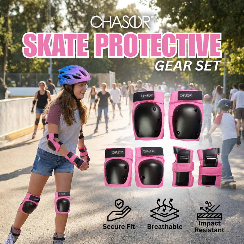 Chaser 6-Piece Protective Gear Set for Kids – Knee, Elbow & Wrist Pads (Pink) Skating, Biking SAFETY
