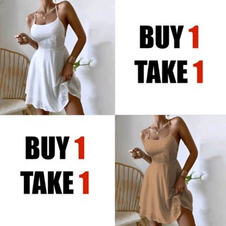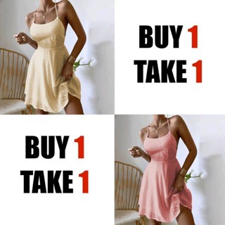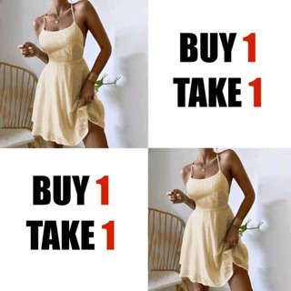 【Buy 1 Take 1】Summer Beach Dress Swiss Crisscross Tieback Slip Womenswear Casual Comfy