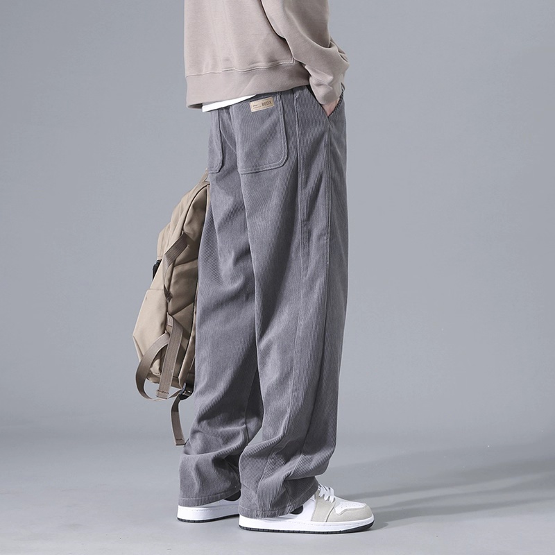 Corduroy Pants For Men Korean Gray Baggy Straight Cut Slacks Slocks Trouser Pants Menswear Womenswe
