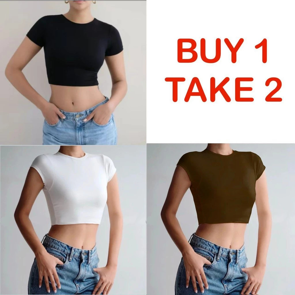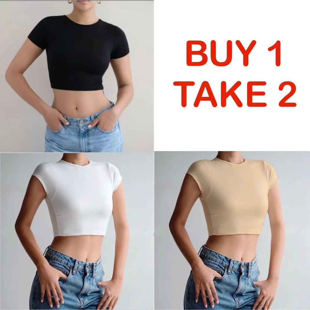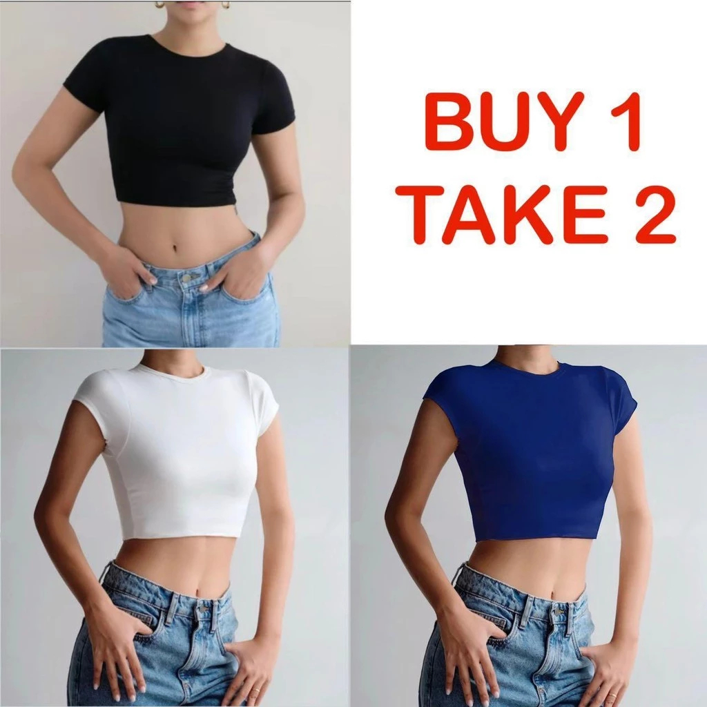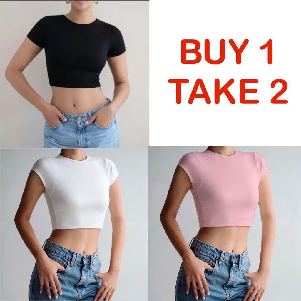 Buy 1 Take 2 Streetwear Round Neck Crop T-Shirt for summer basic outfit Womenswear