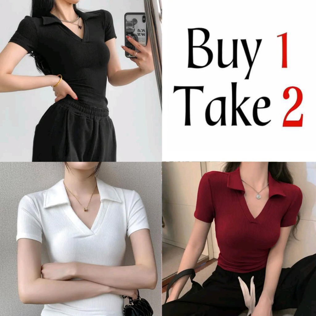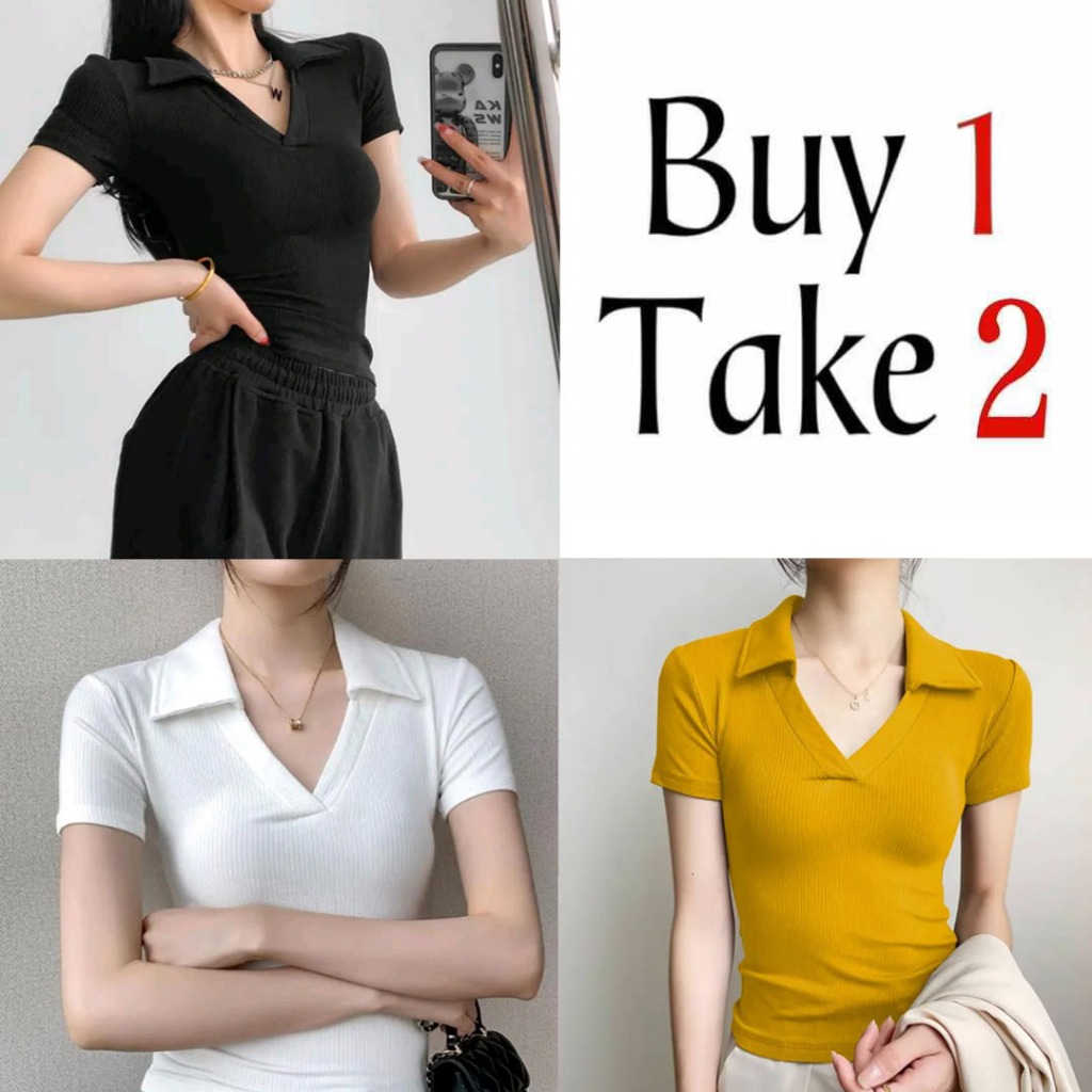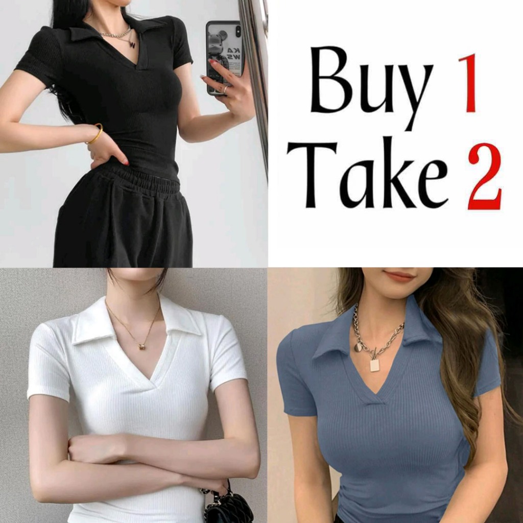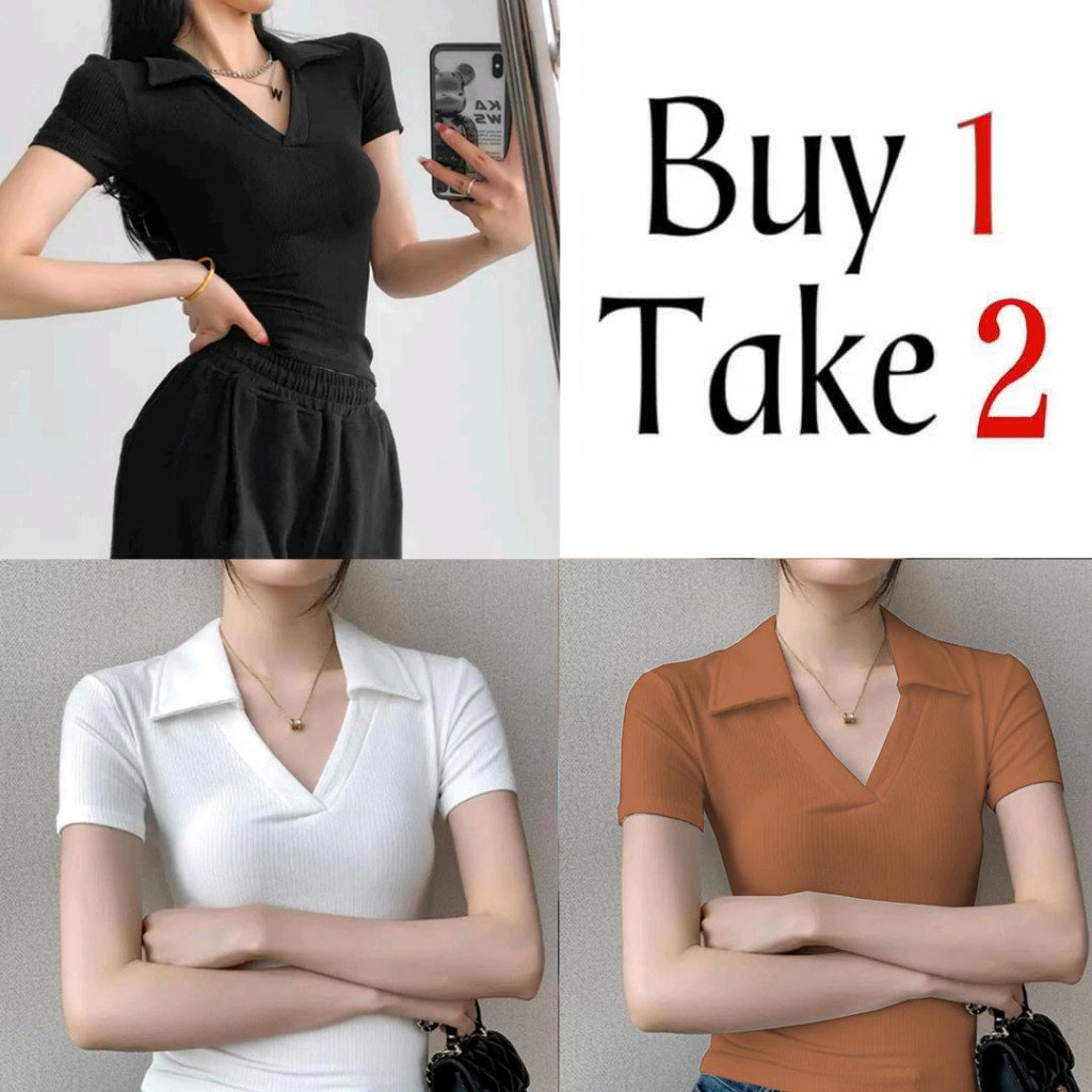 Collar T-Shirt Buy 1 Take 1(Total of 2) Buy 1 Take 2(Total of 3)V-Neck Tops fitted Women Blouse Tops