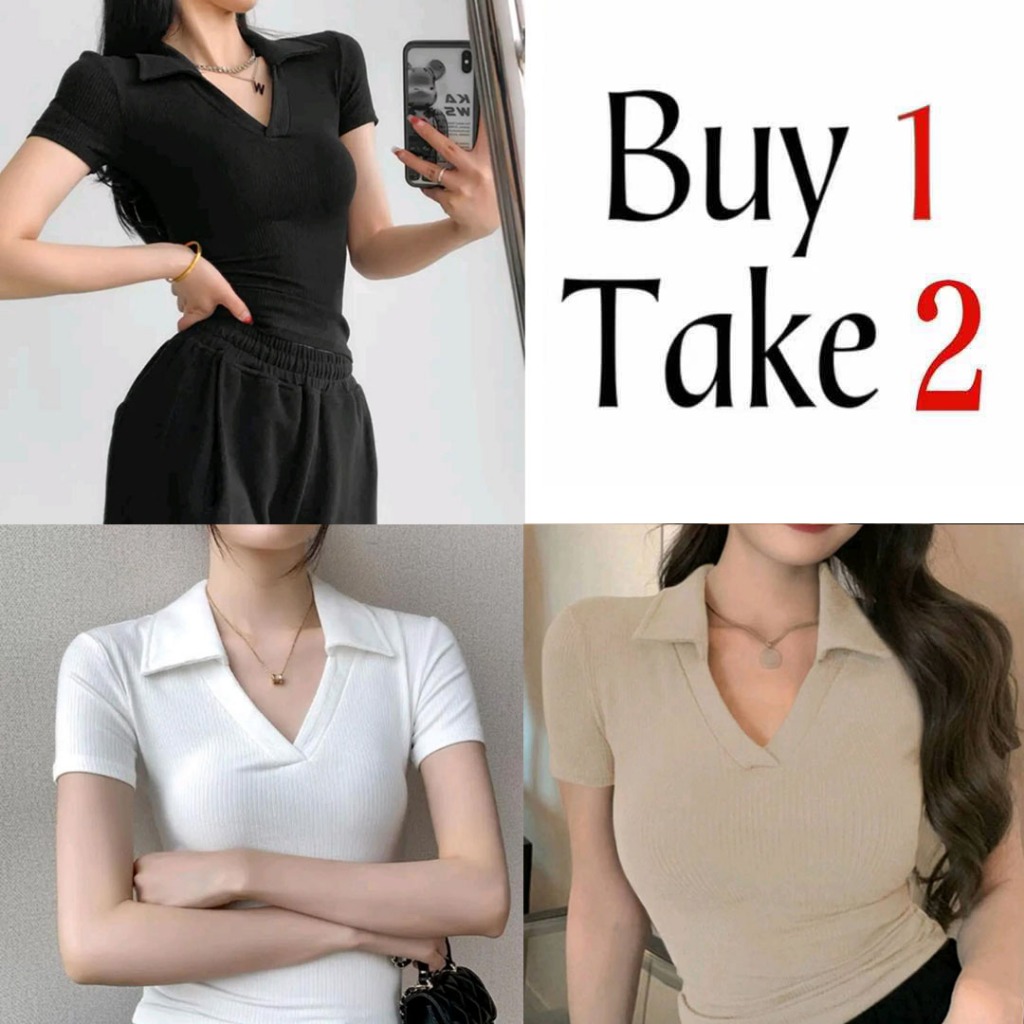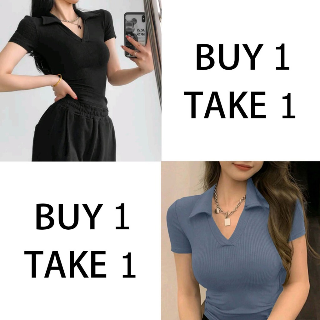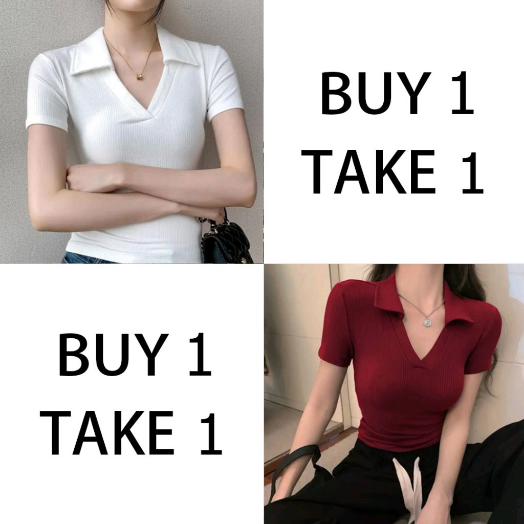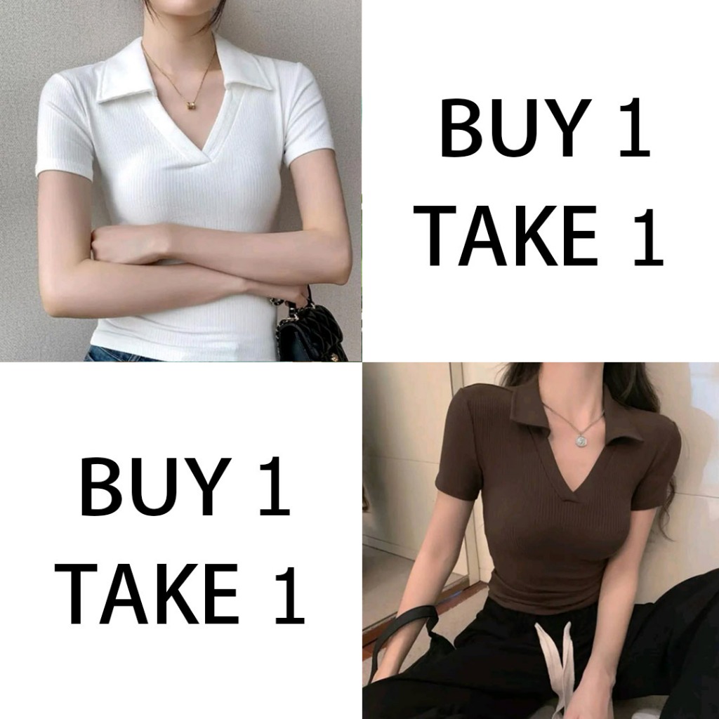 Collar T-Shirt Buy 1 Take 1(Total of 2) Buy 1 Take 2(Total of 3)V-Neck Tops fitted Women Blouse Tops