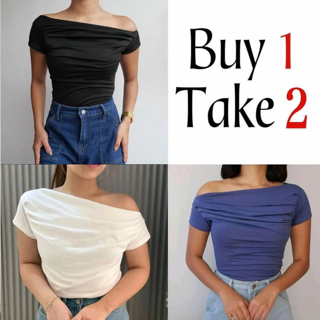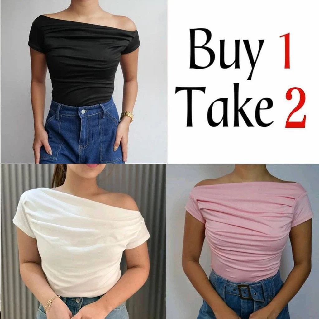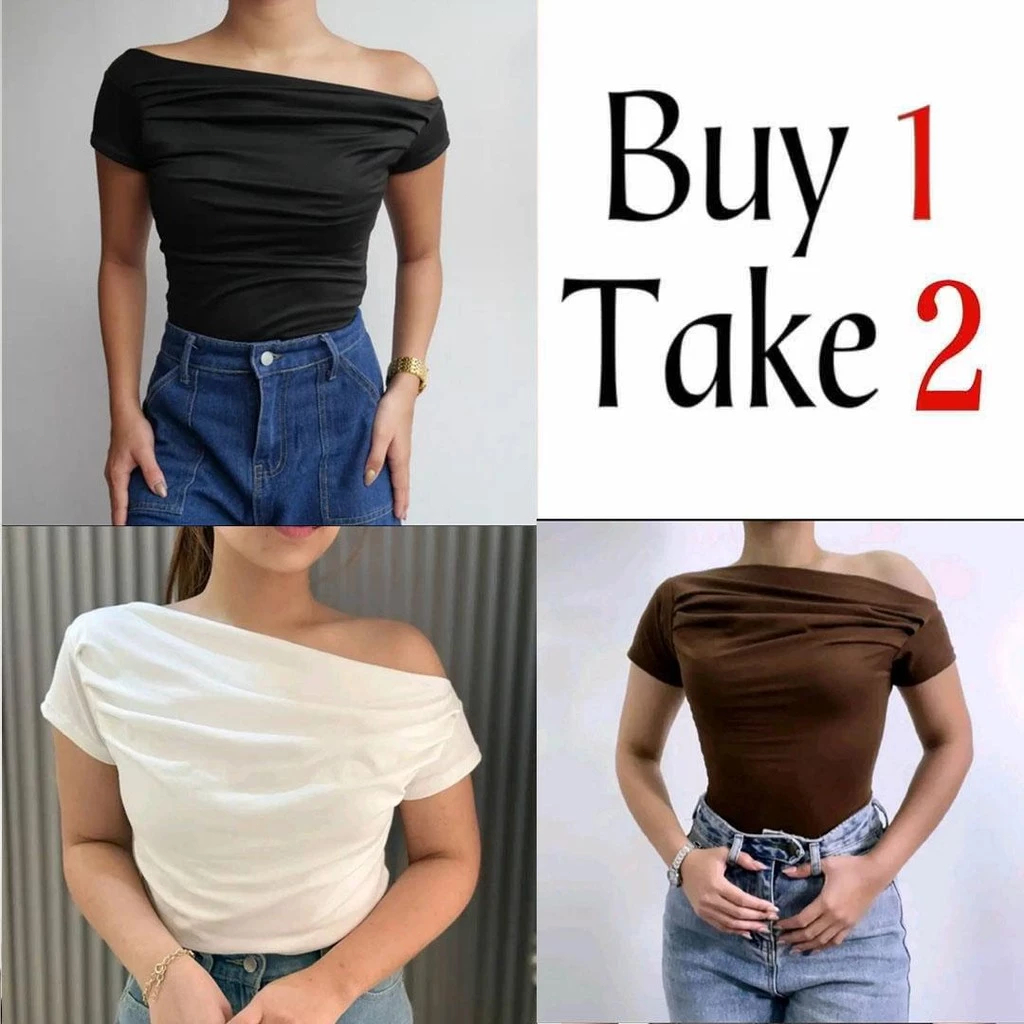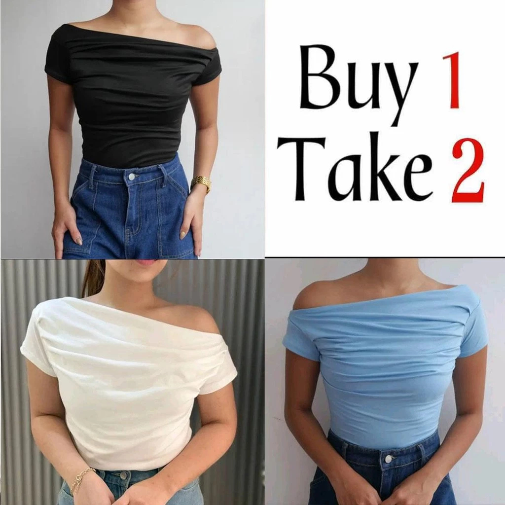 Buy 1 Take 2 Korean Cotton Short Sleeve Basic Elegant Blouse for Women's Clothes Womenswear