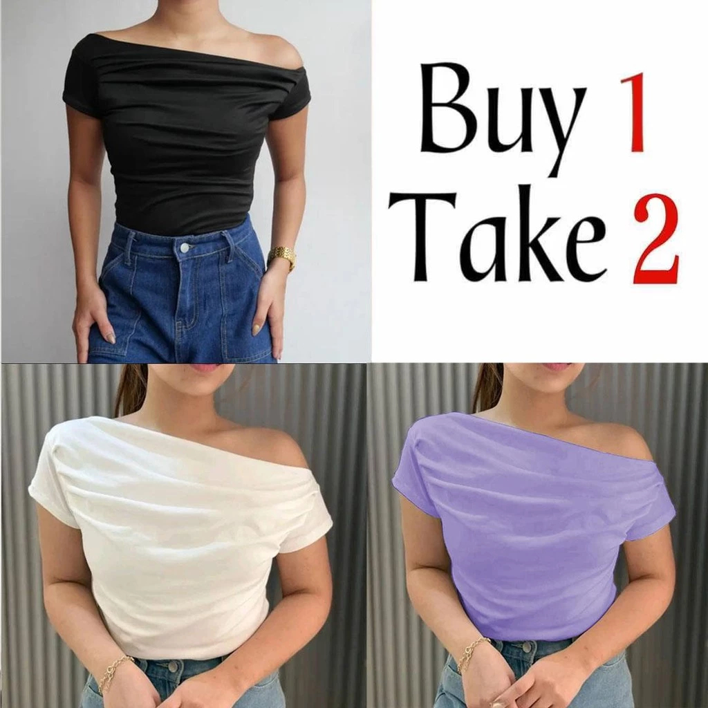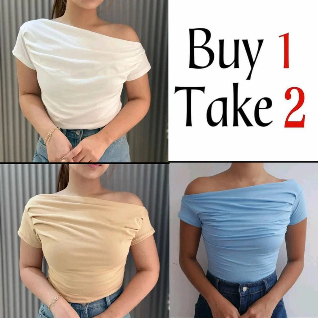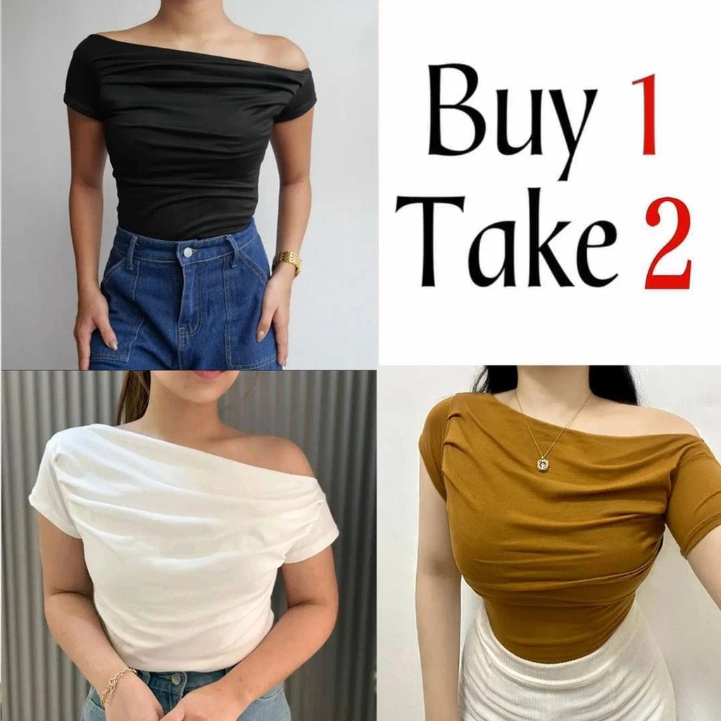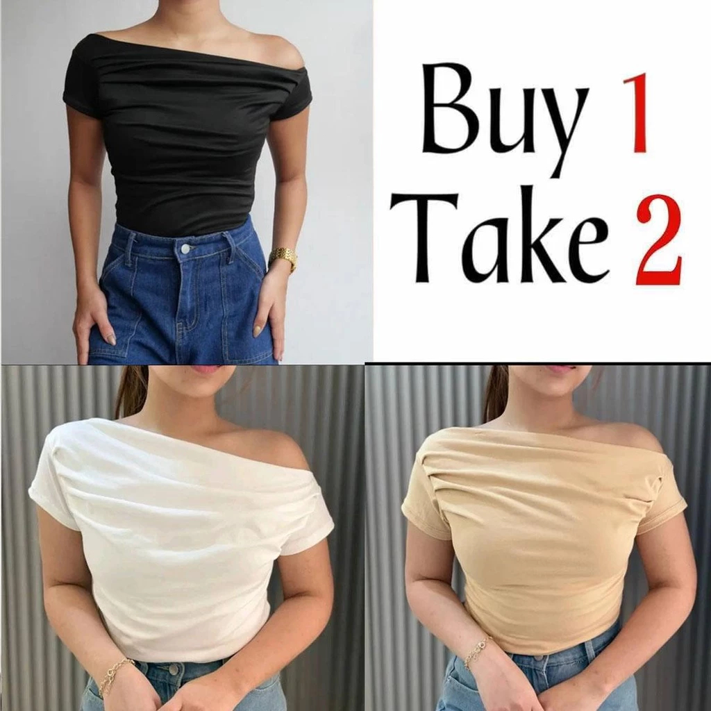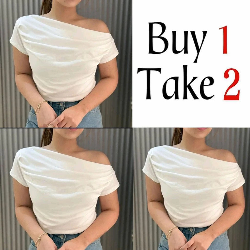 Buy 1 Take 2 Korean Cotton Short Sleeve Basic Elegant Blouse for Women's Clothes Womenswear