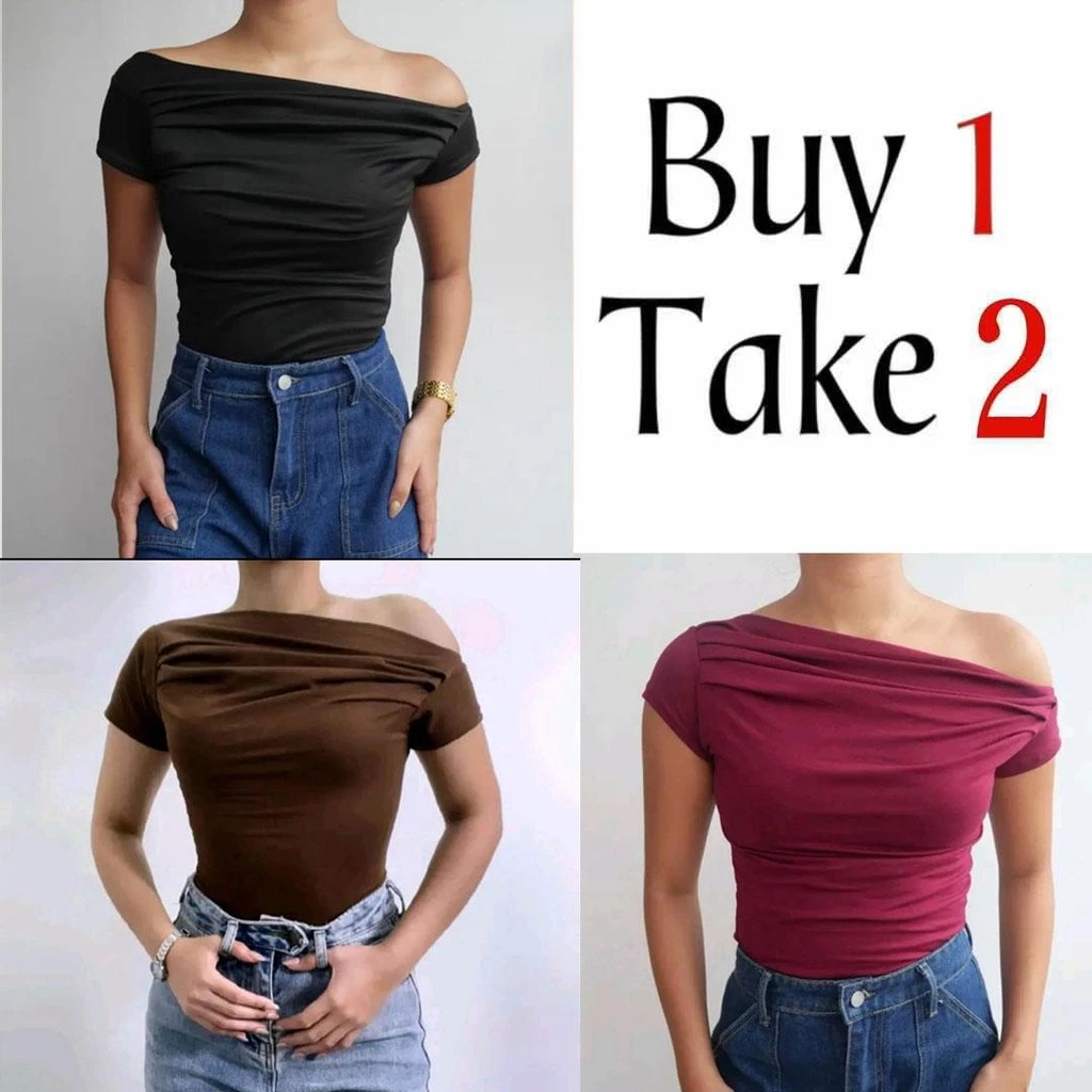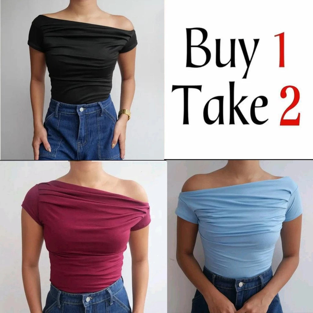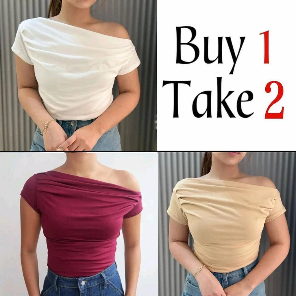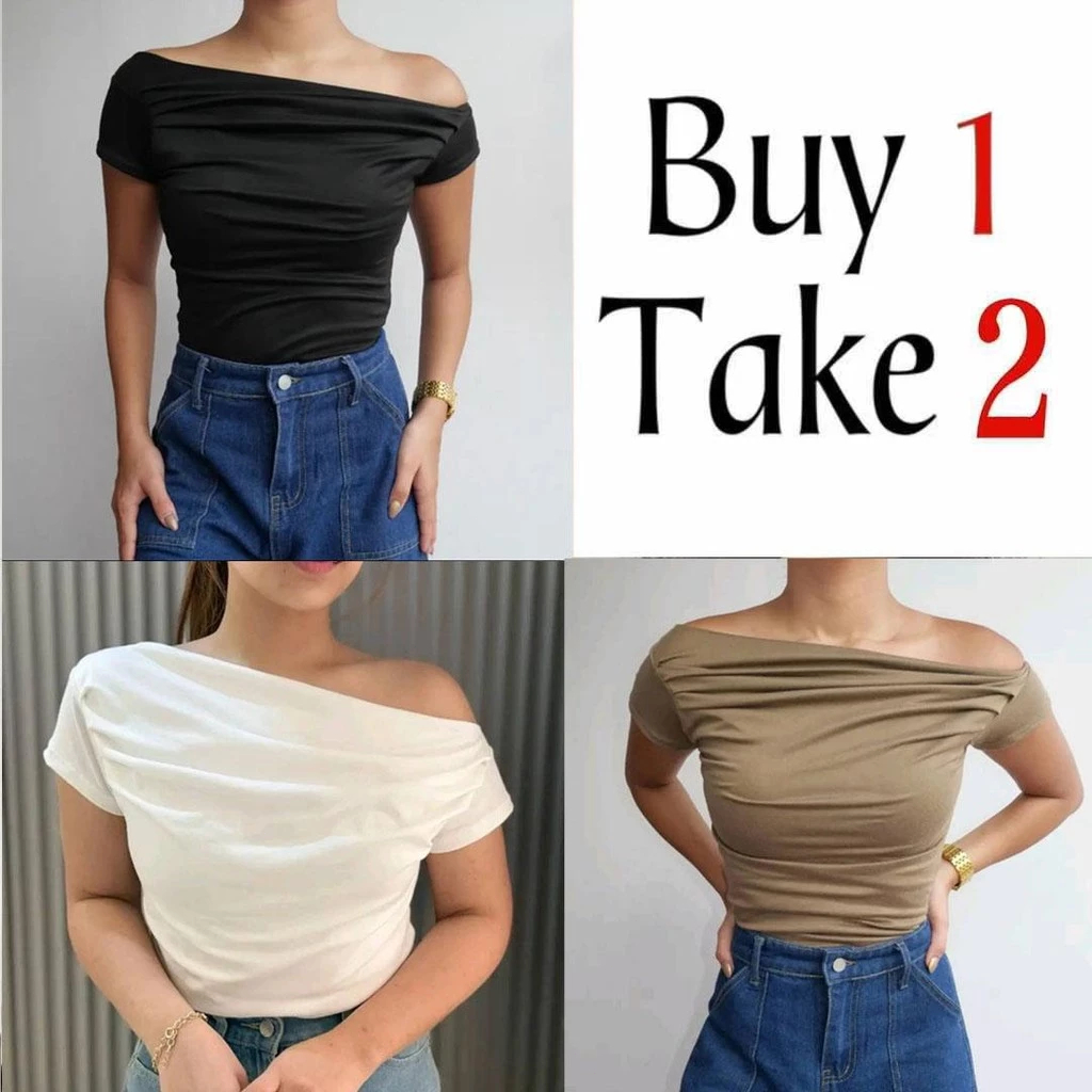 Buy 1 Take 2 Korean Cotton Short Sleeve Basic Elegant Blouse for Women's Clothes Womenswear