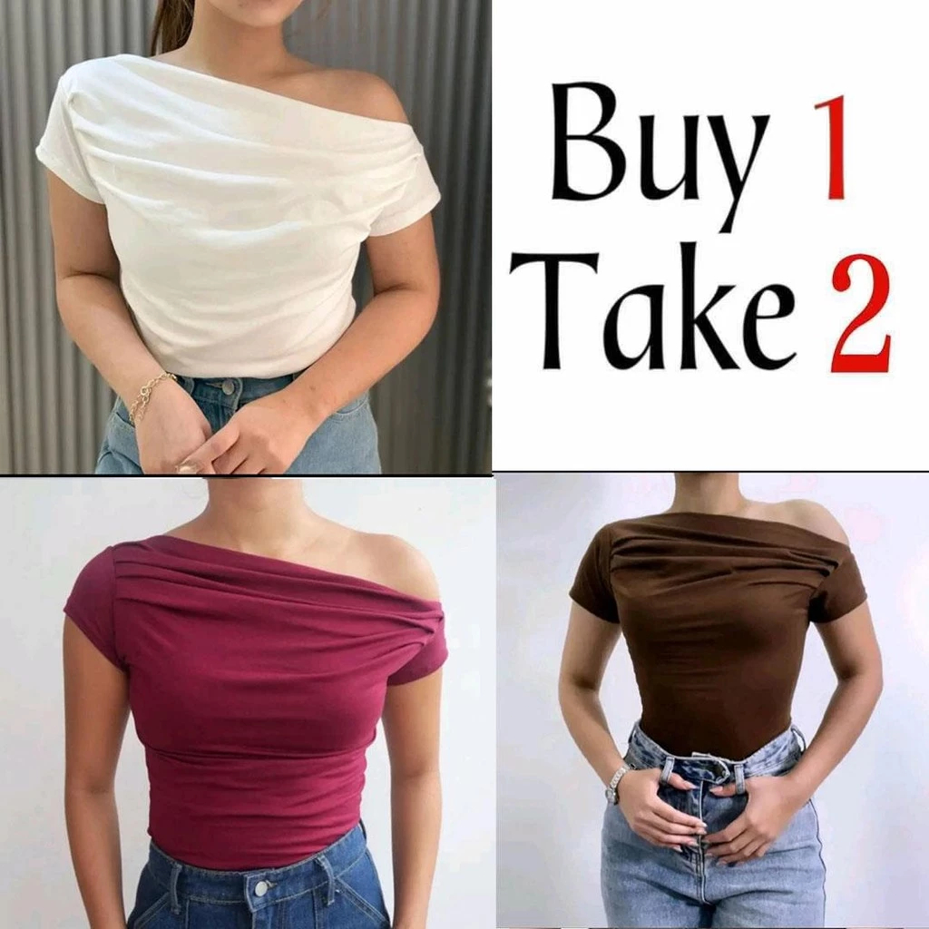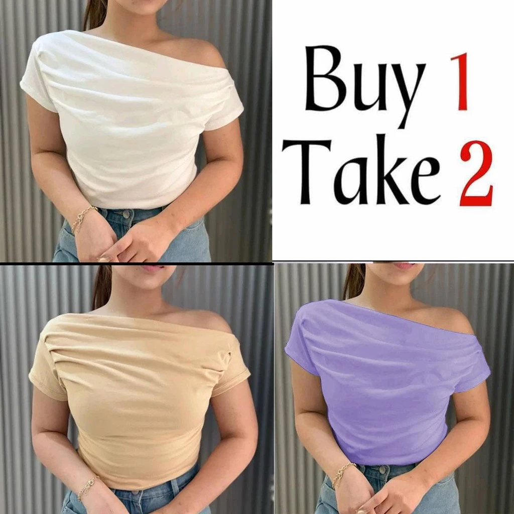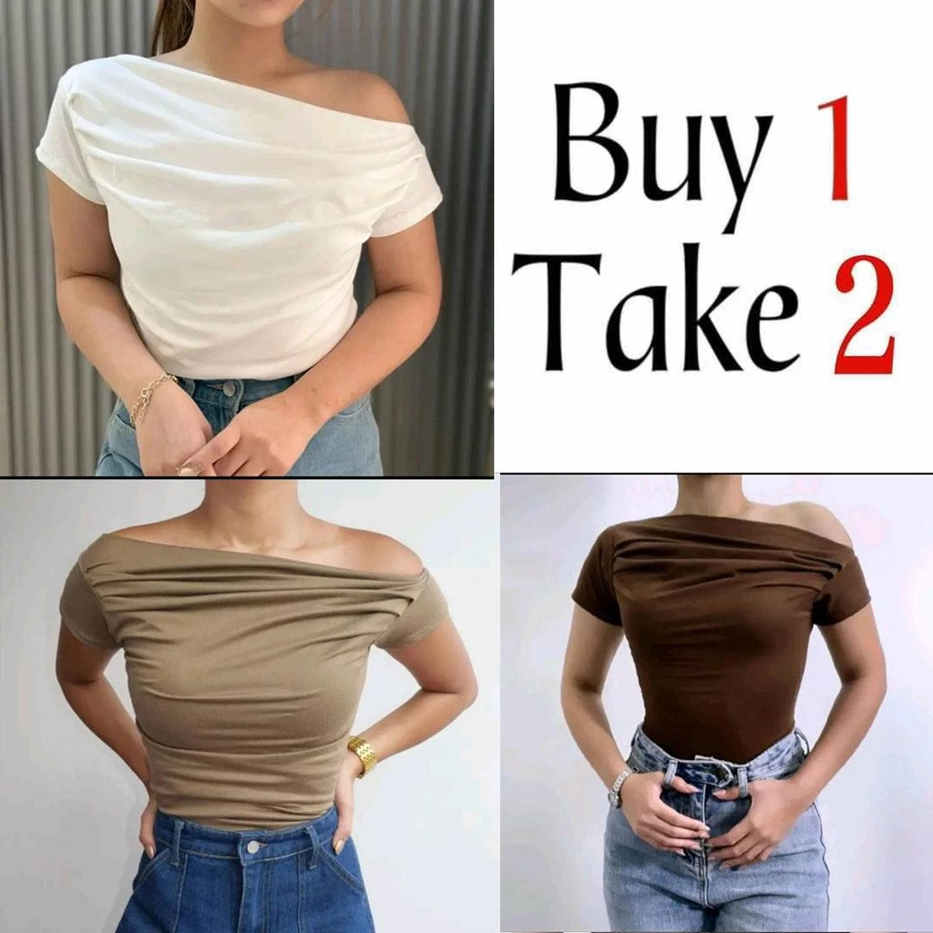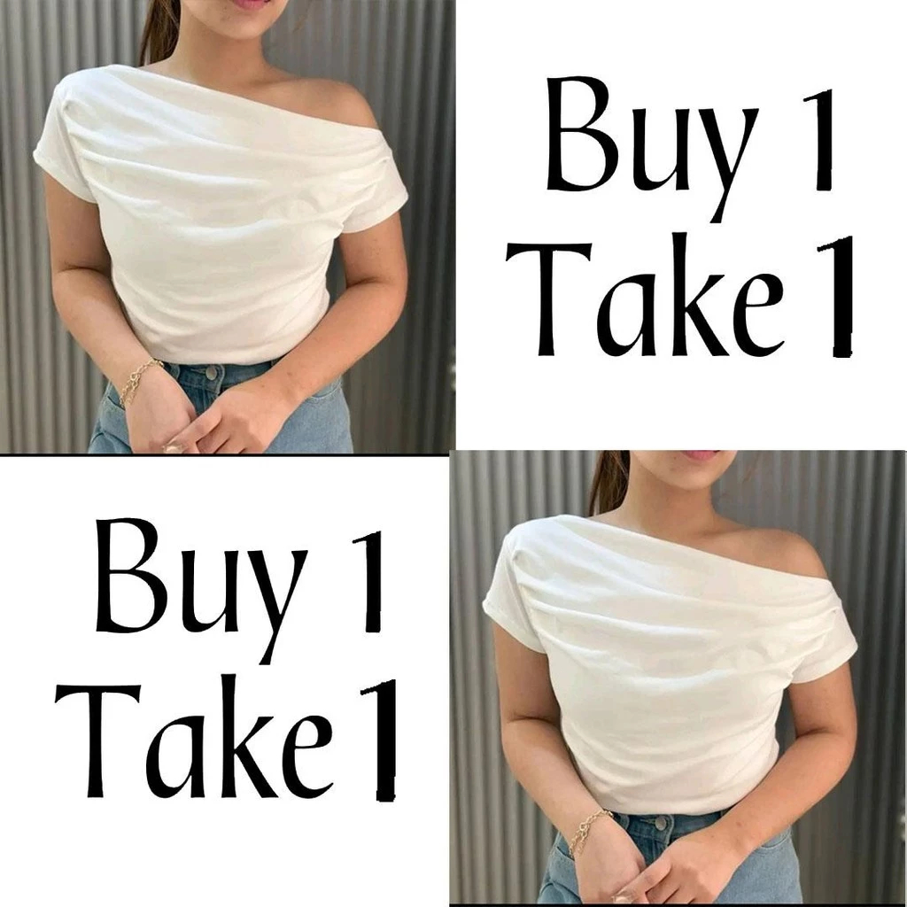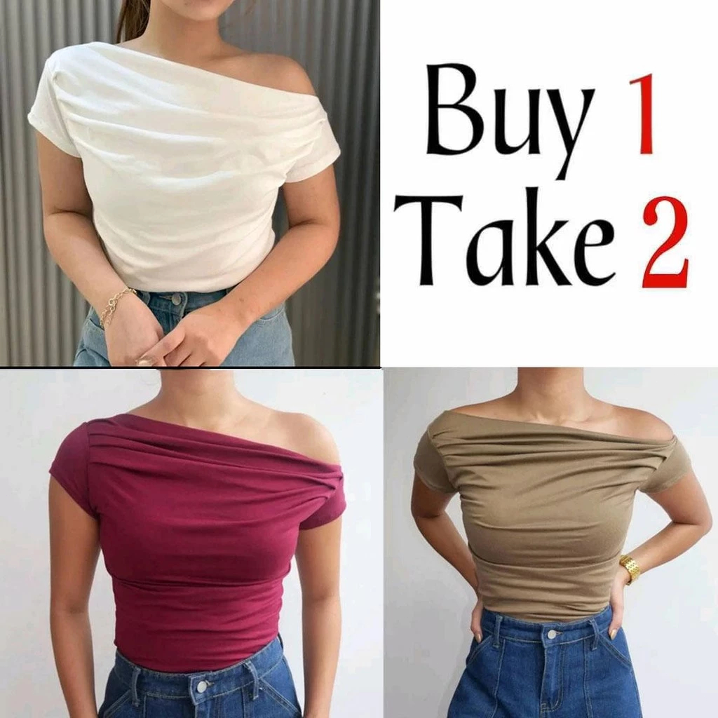 Buy 1 Take 2 Korean Cotton Short Sleeve Basic Elegant Blouse for Women's Clothes Womenswear