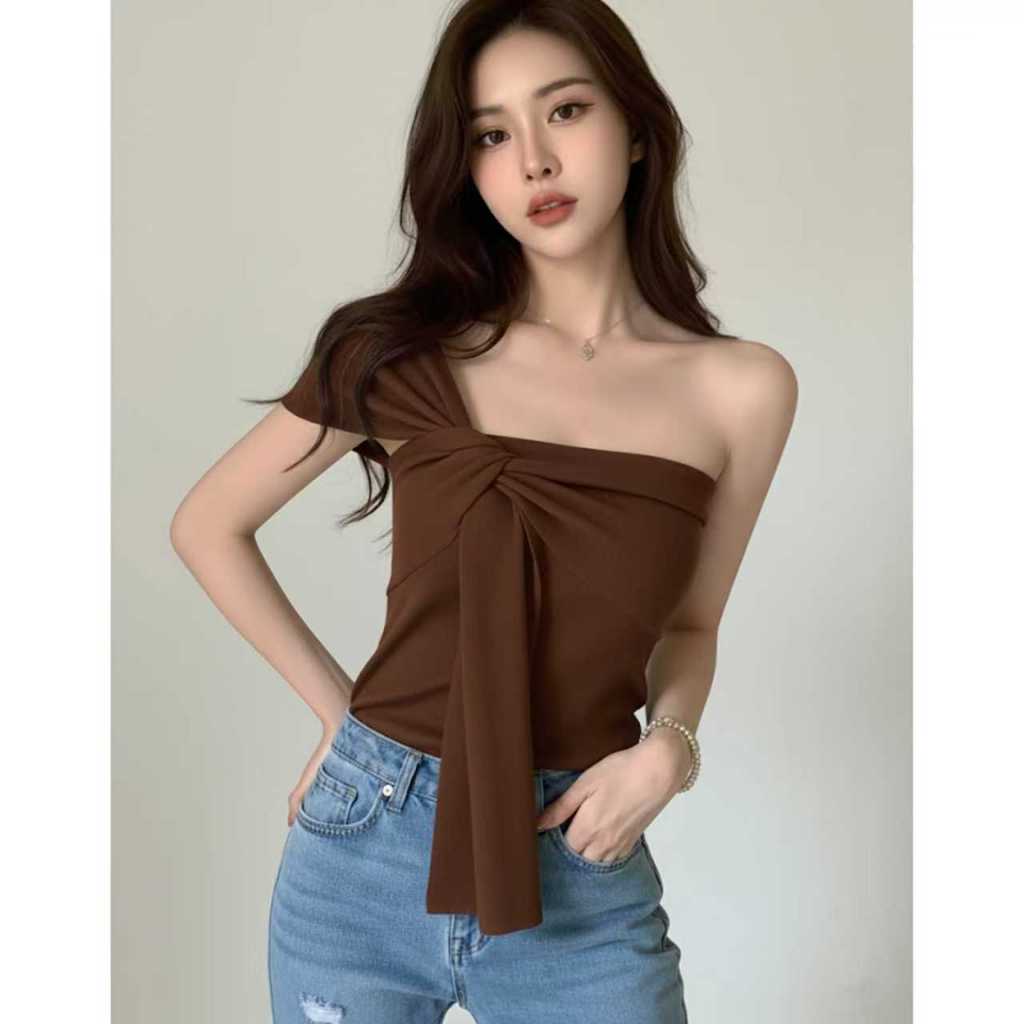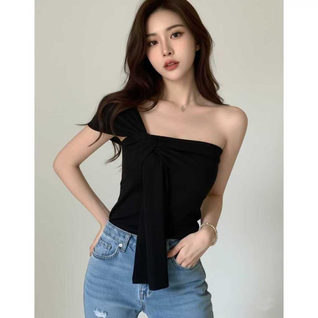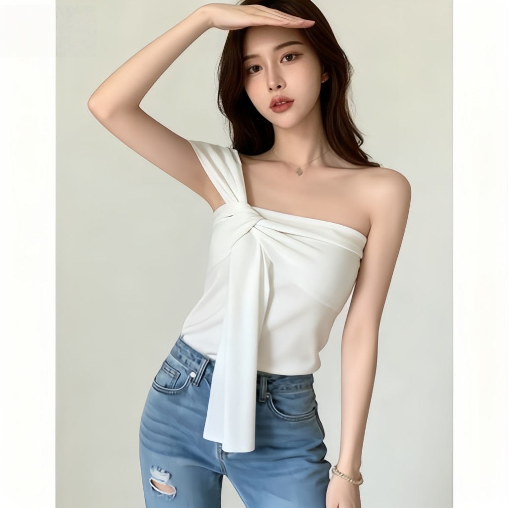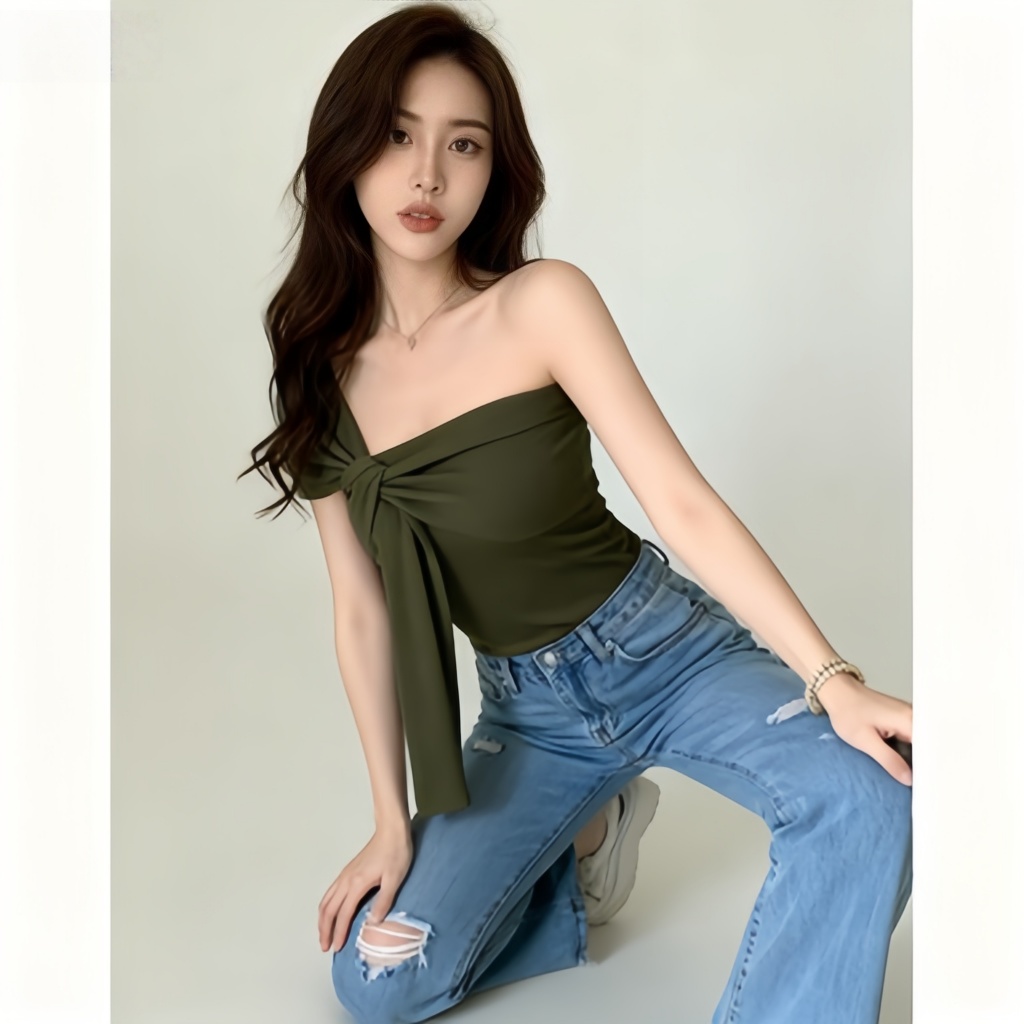 Women's French Knotted Crossbody Short Vest Bare Middriff Fit Outer Wear Sling Top cute Asymmetric