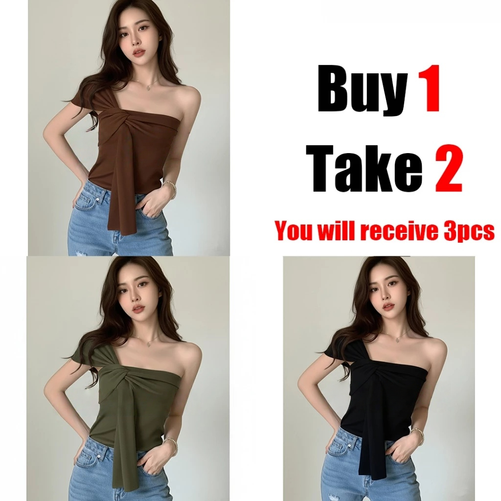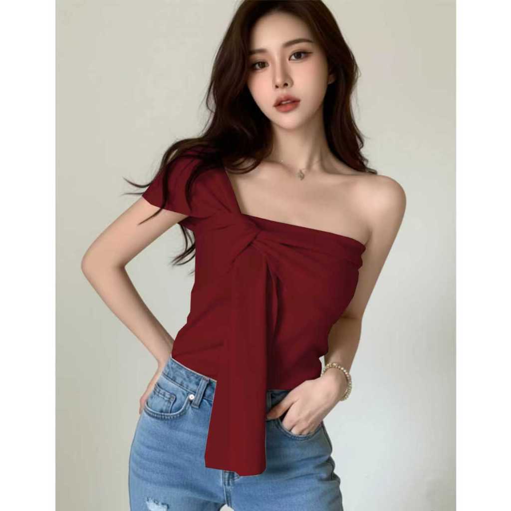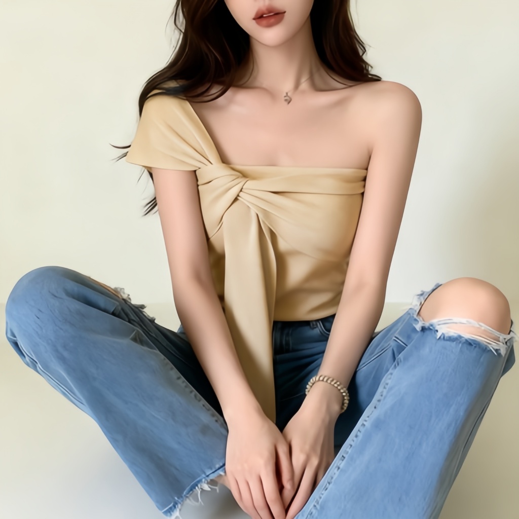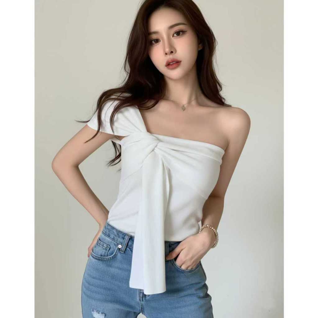 Women's French Knotted Crossbody Short Vest Bare Middriff Fit Outer Wear Sling Top cute Asymmetric