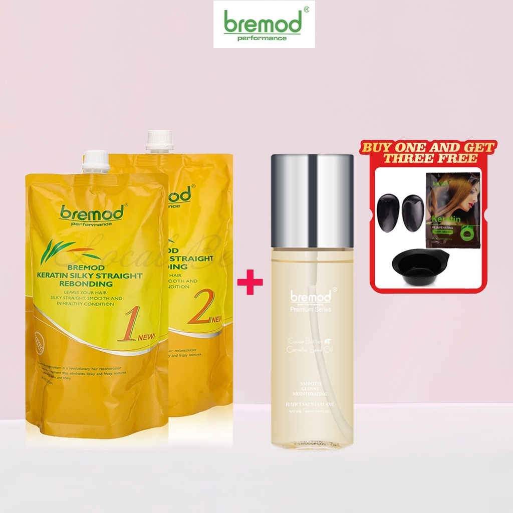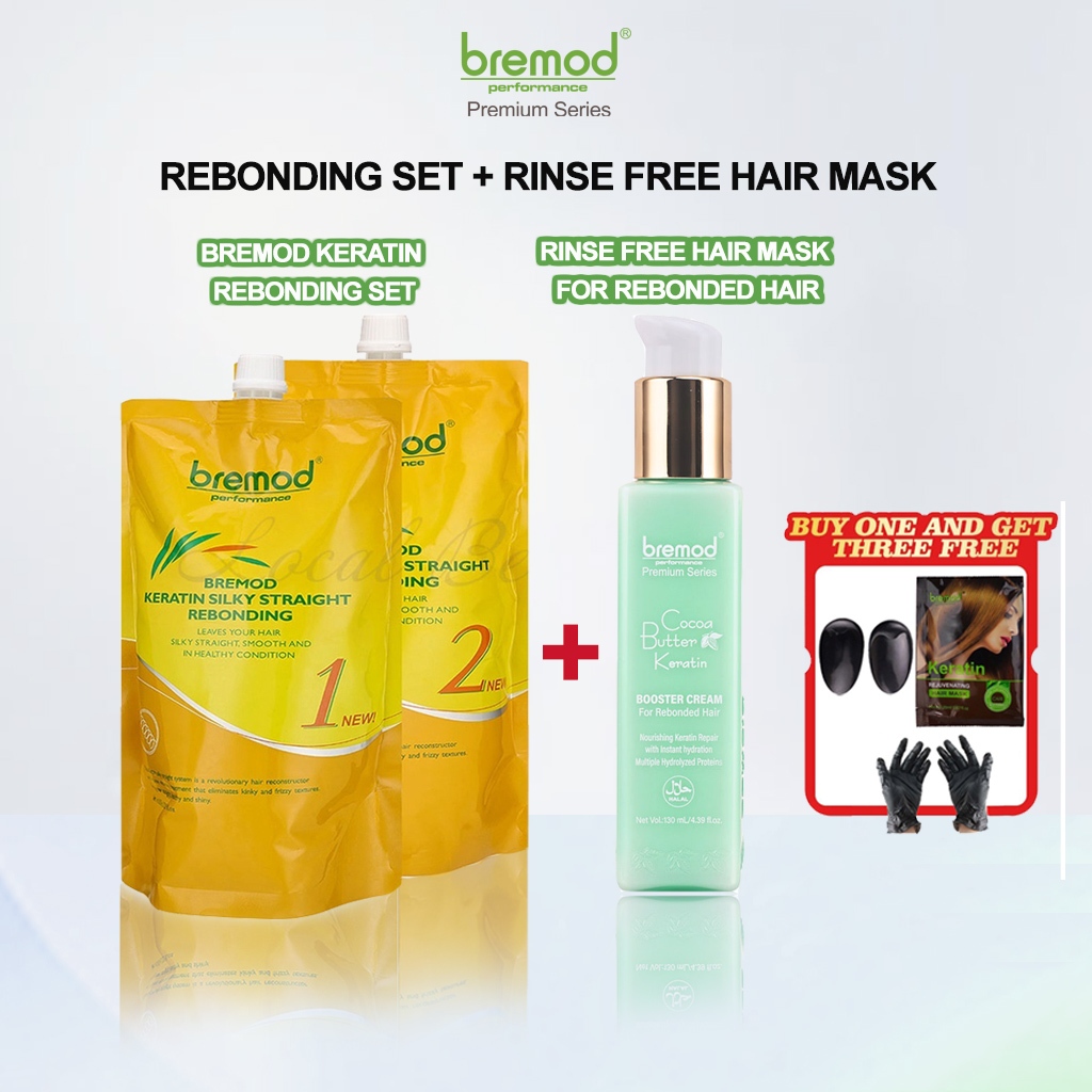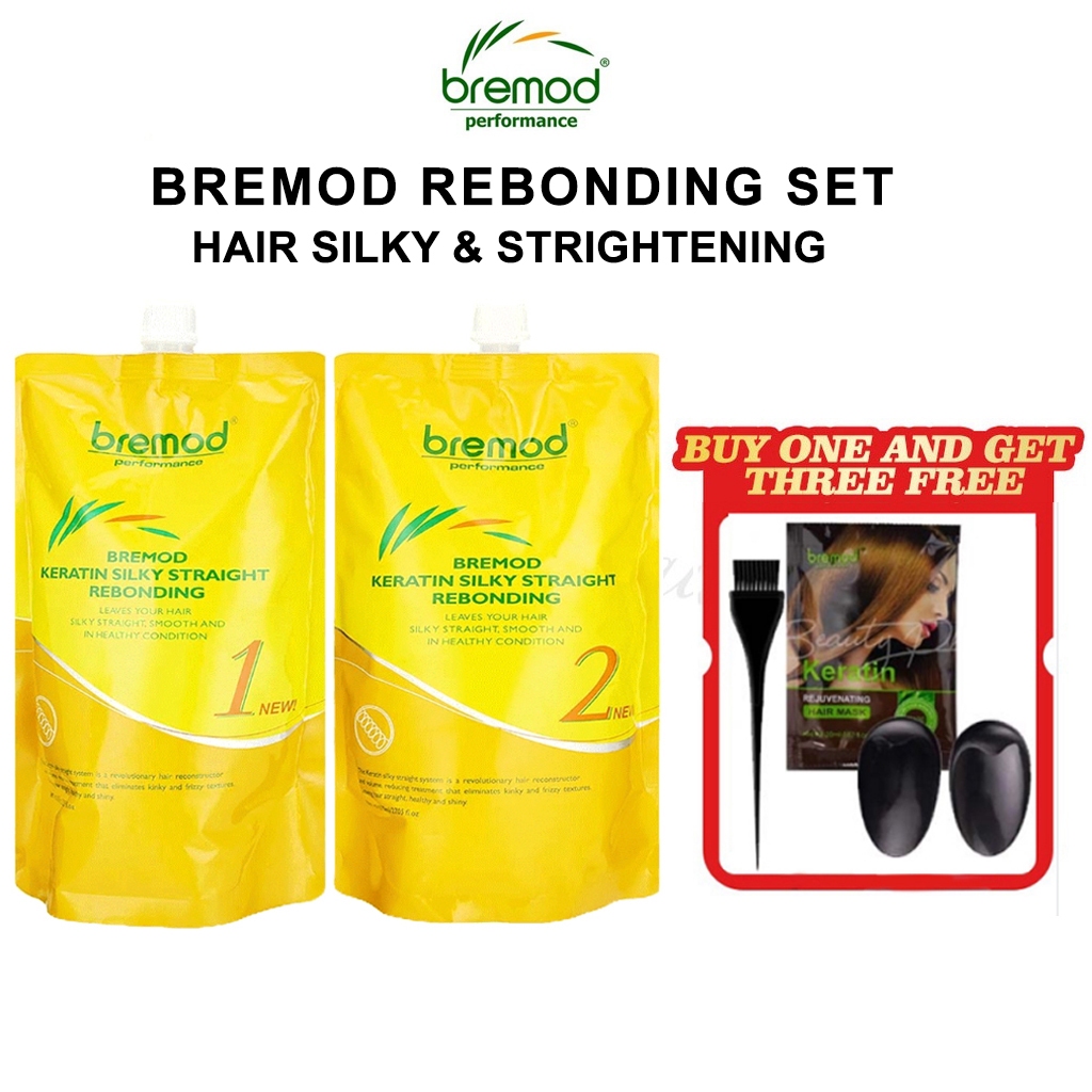 Bremod Rebonding Set Keratin Silky Straight Hair Straigtening Cream with 10 in 1 Serum Treatment