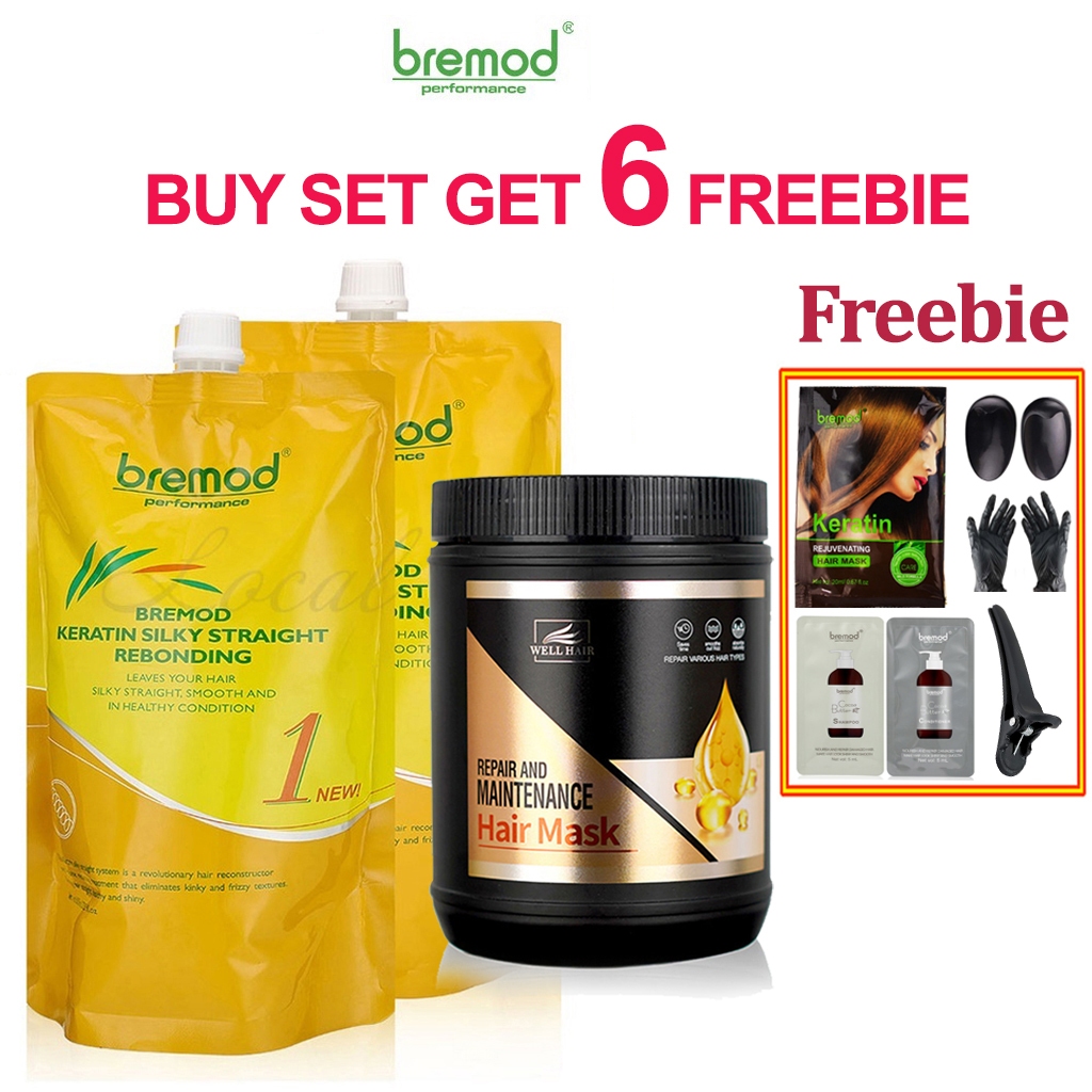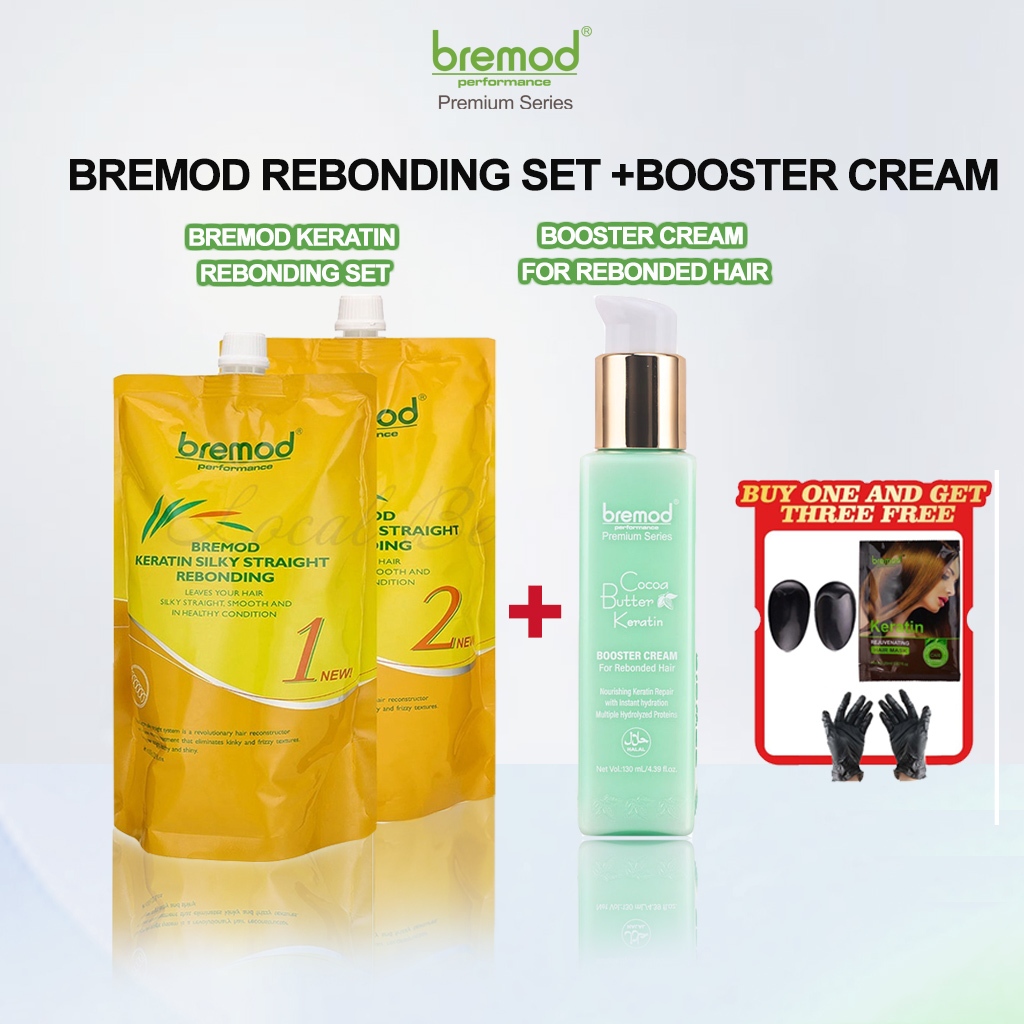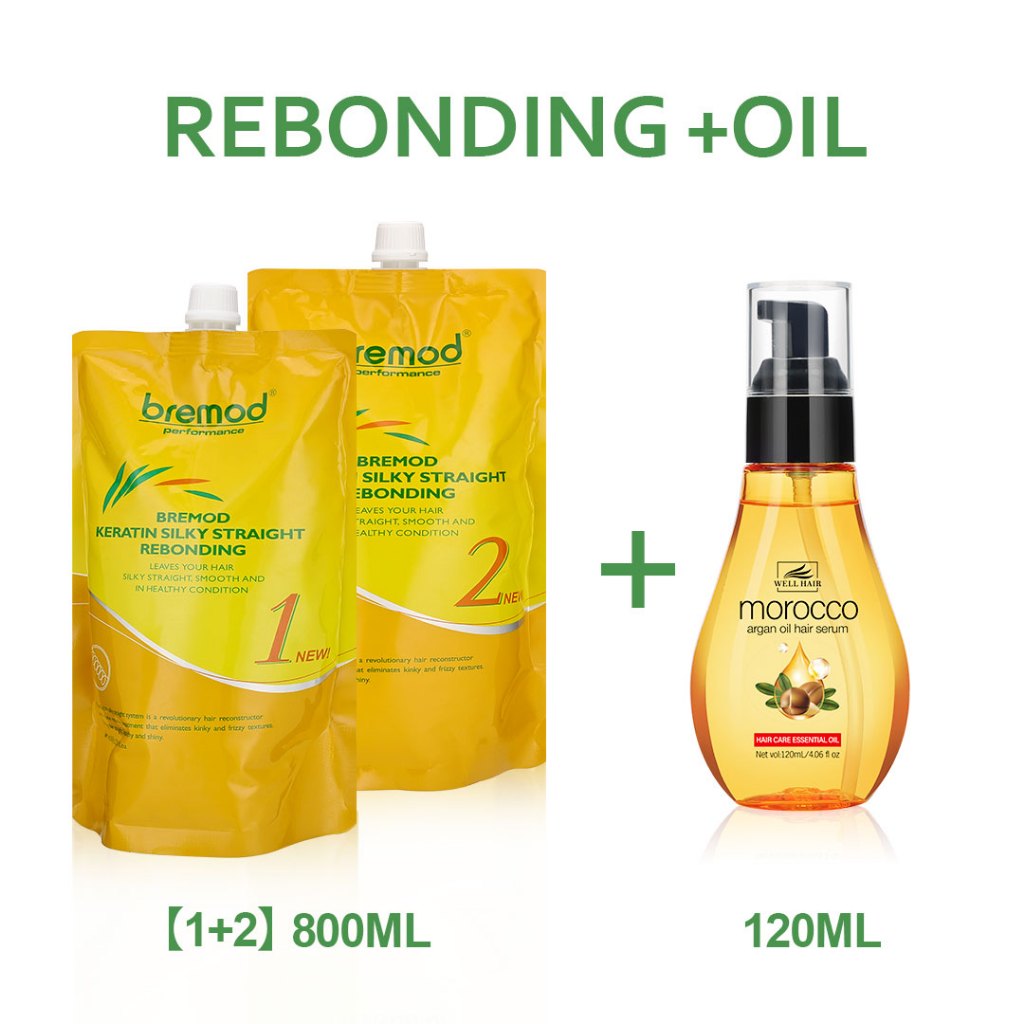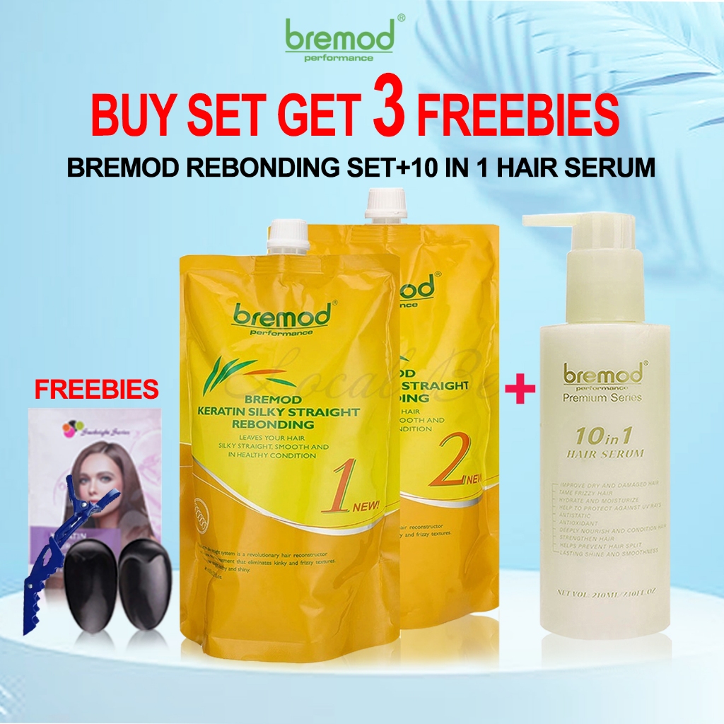 Bremod Rebonding Set Keratin Silky Straight Hair Straigtening Cream with 10 in 1 Serum Treatment