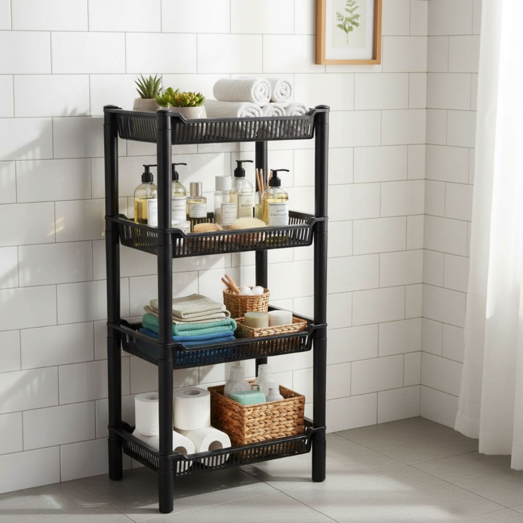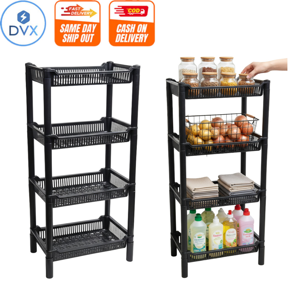 DVX 4-Layer Rack Storage Black Plastic Shelves