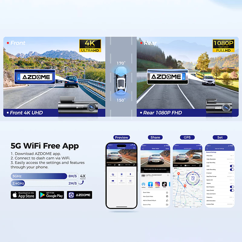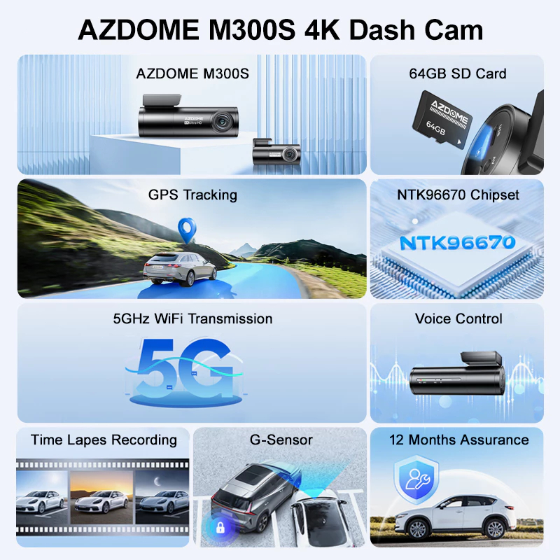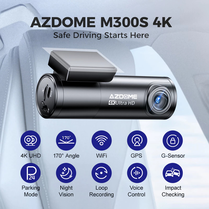 Azdome M300S 4K Dash Camera 5G WIFI, GPS Tracking ,G-sensor,Voice Control 150 Degree Viewing Angle