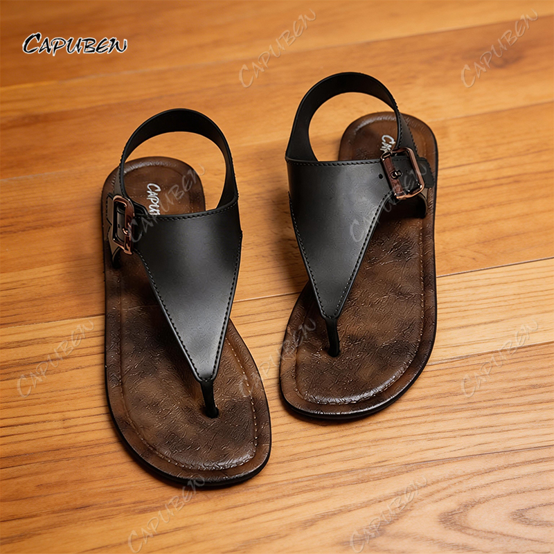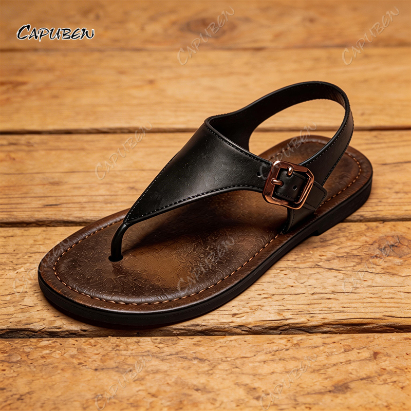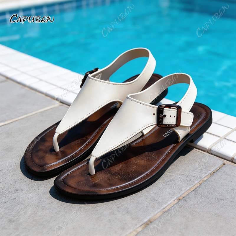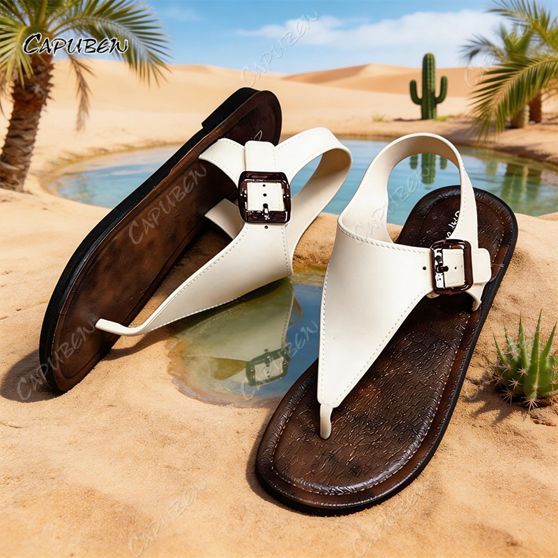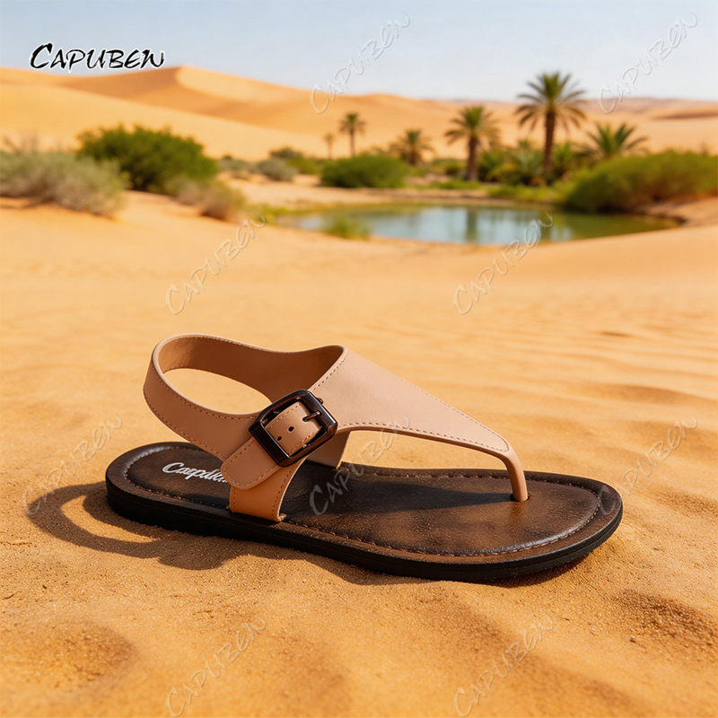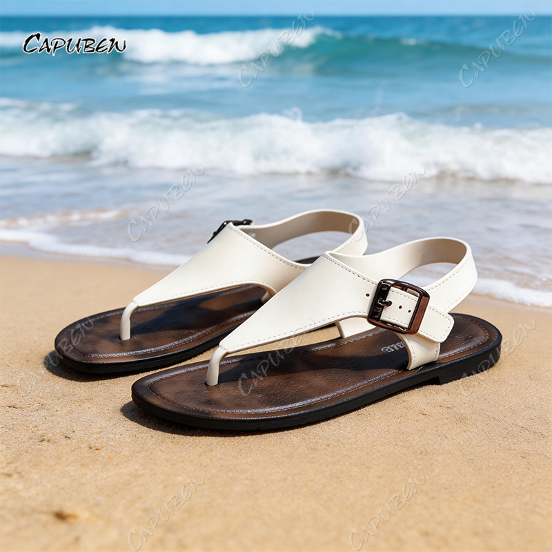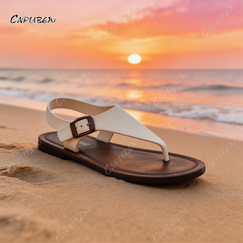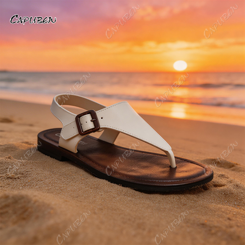 CAPUBEW Flat Sandals For Women With Adjustable Buckle Retro Korean Style Sandals Casual