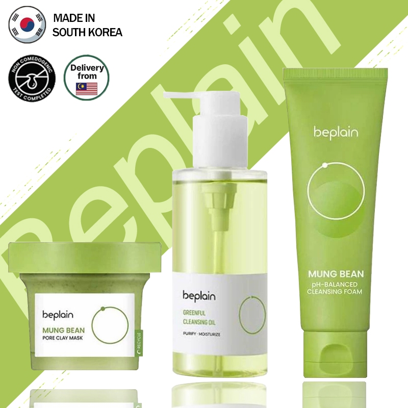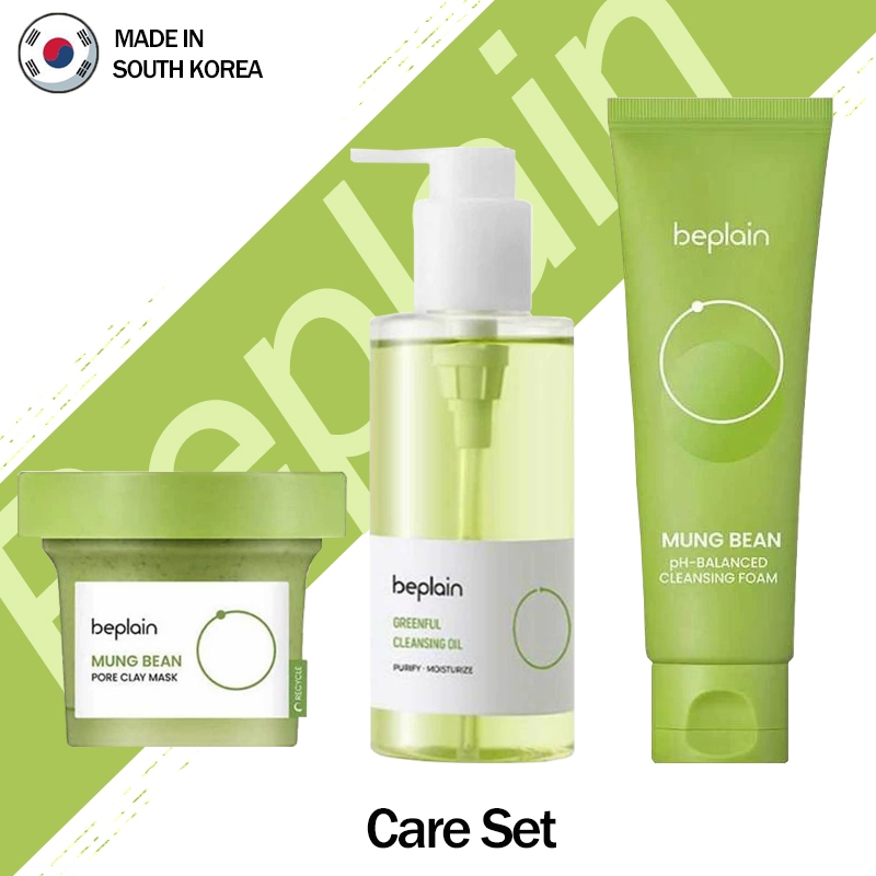 Beplain Green Bean Sensitive Skin Gentle Facial Cleanser 80ml+Mud Mask 120ml+Makeup Removal Oil 200ml Care Set