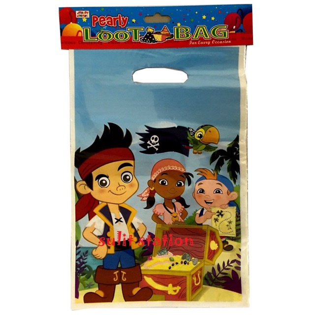 10pcs JAKE NEVERLAND PIRATES PARTY PLASTIC LOOT POUCH BAG giveaways souvenir favors need supply bags