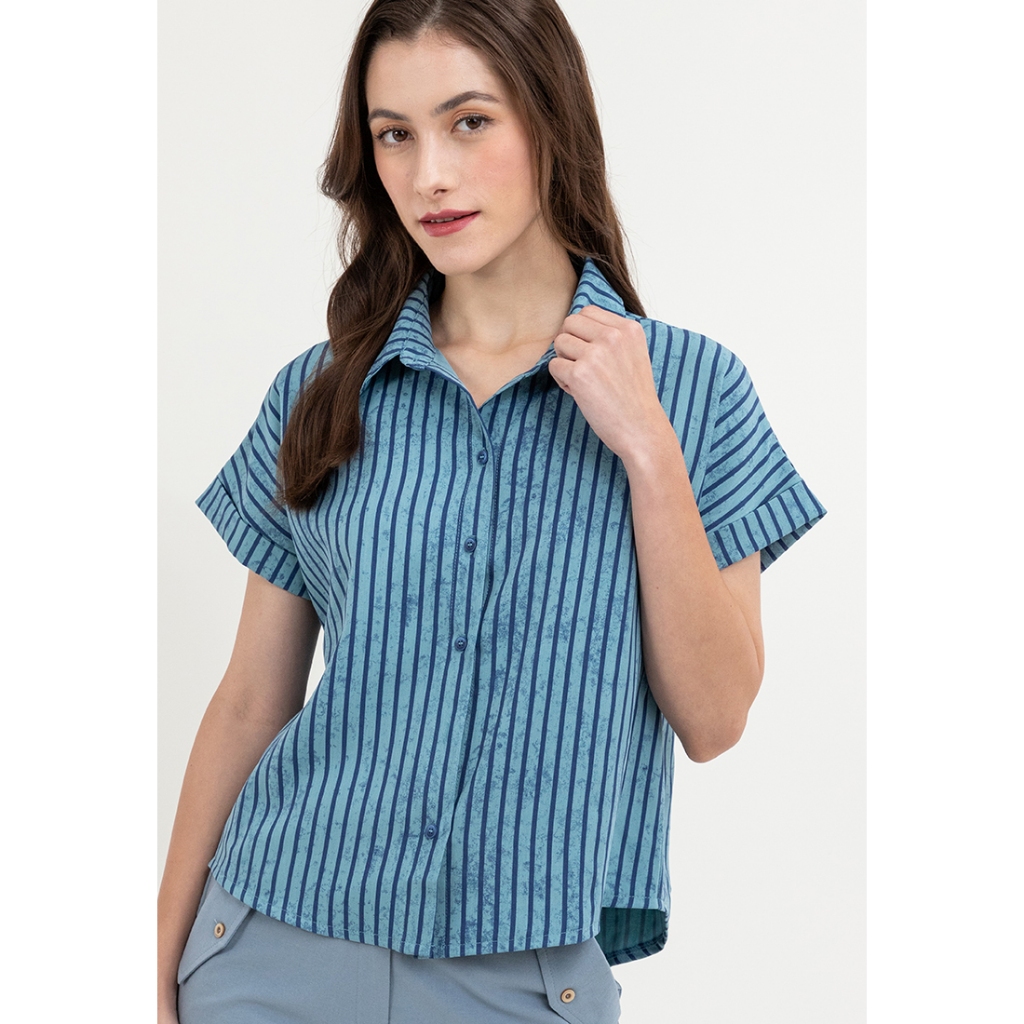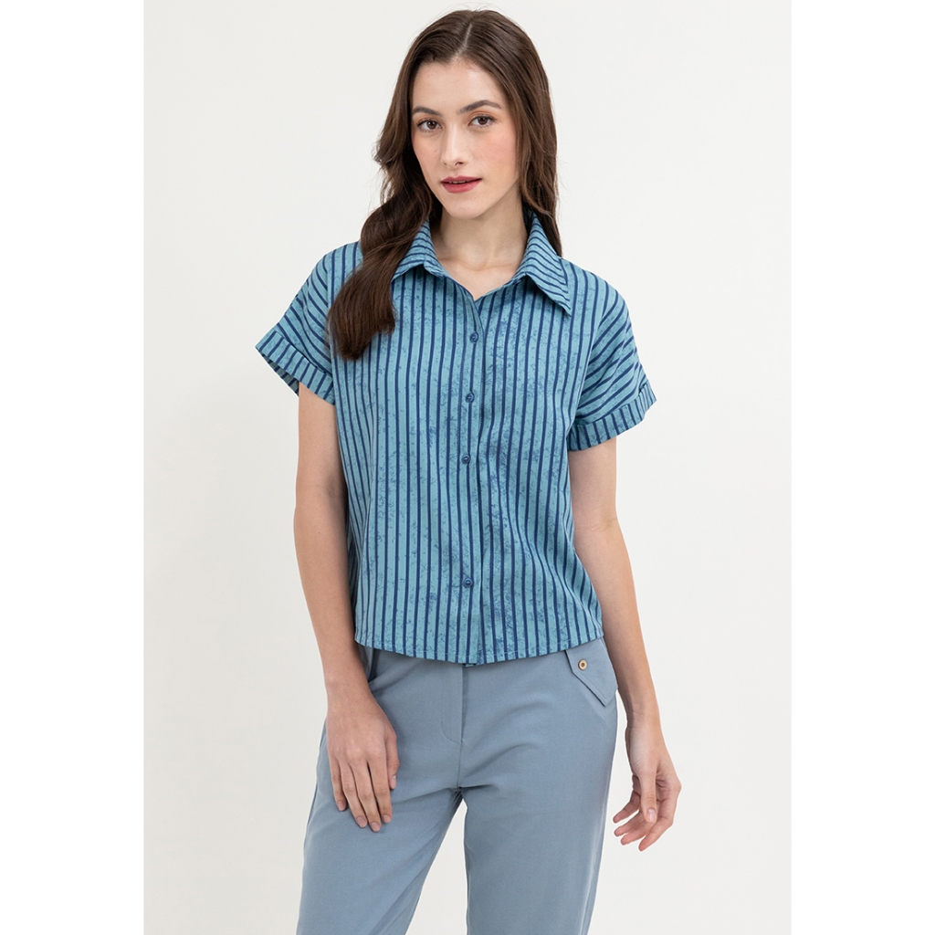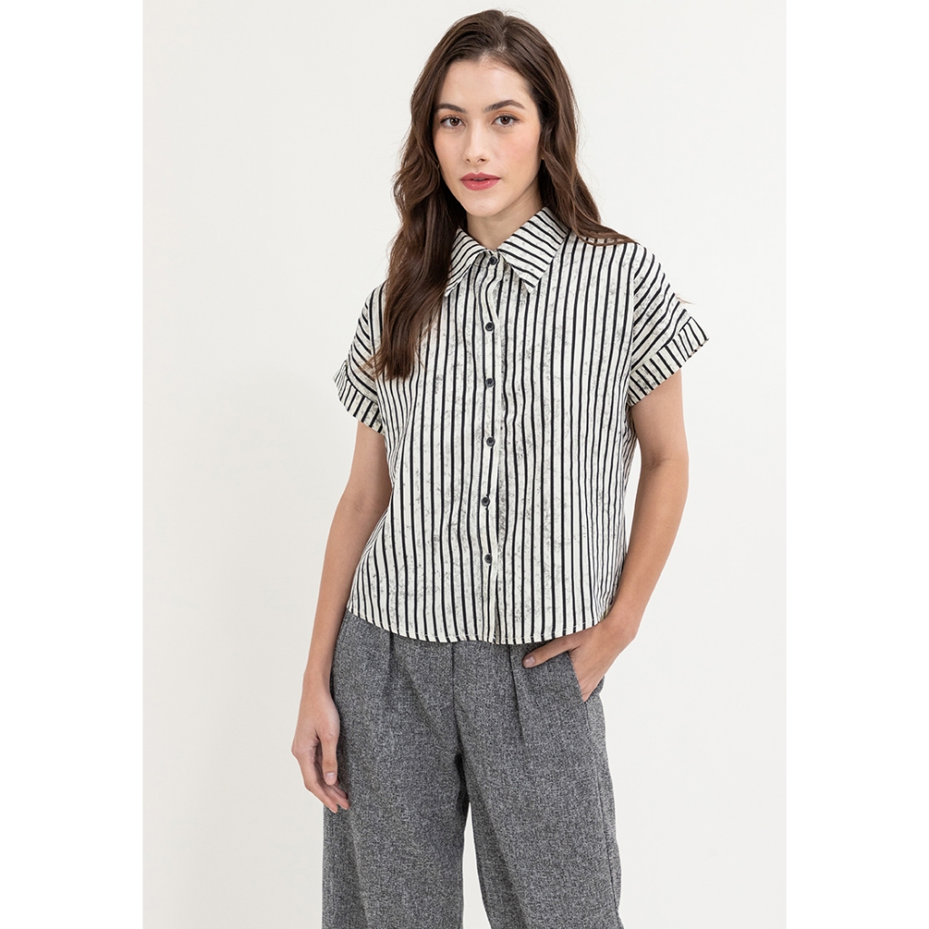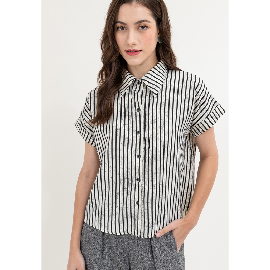 Krizia Button Down Collared Stripe Blouse