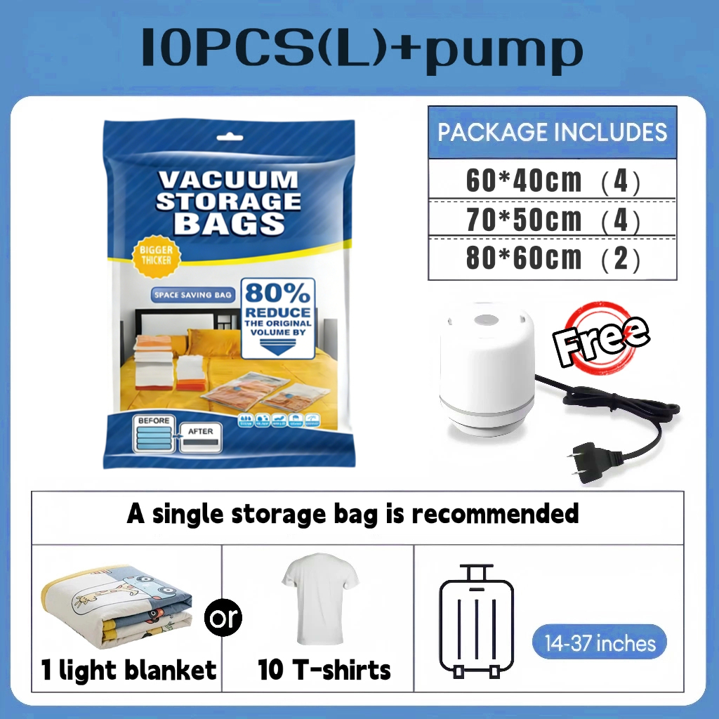5/10Pcs Vacuum Storage Bags Space SavingResealable With Pump Vacuum Seal Bags For Clothing Compression
