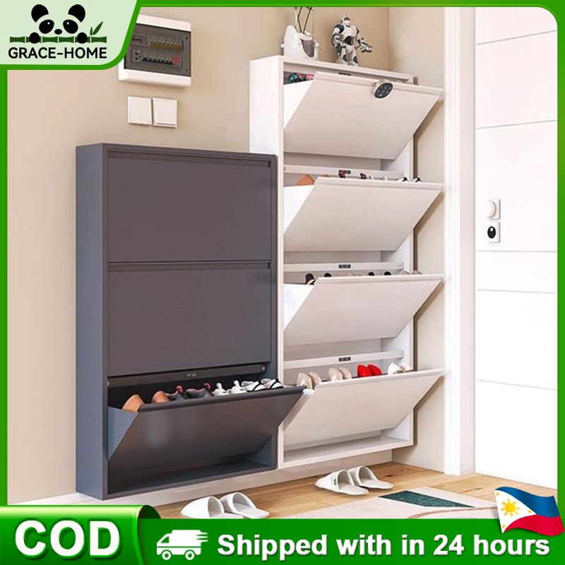 Ultra-Thin Steel Bucket Shoe Cabinet Nordic Small Apartment Wall-Mounted Household Large Capacity