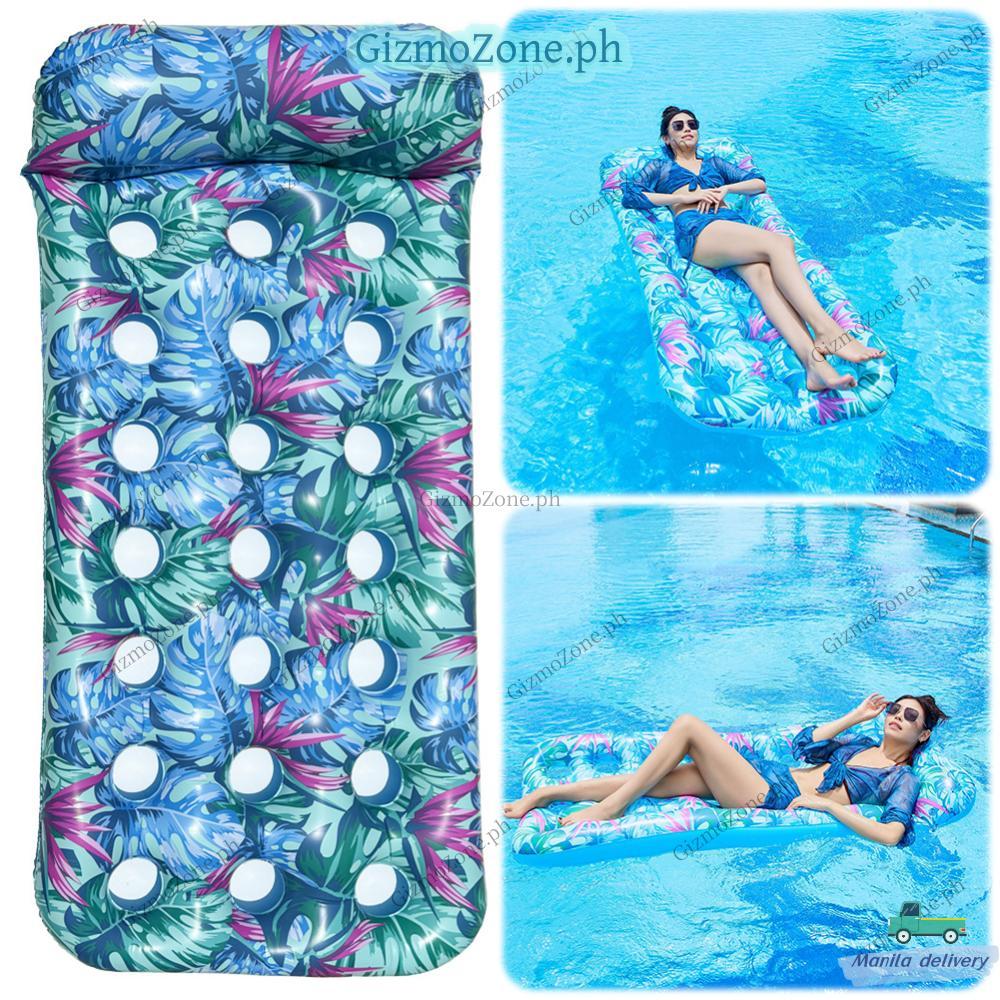 Pool Floats Lounger Swimming Mattress with Headrest Swimming Lounge Bed Portable Pool Floaties for Swimming Pool Party