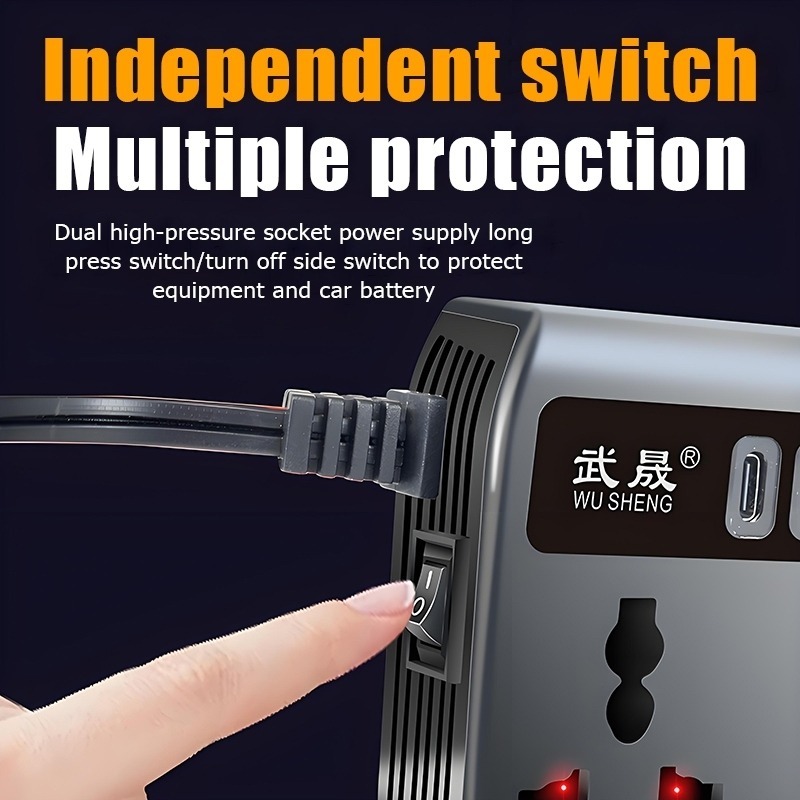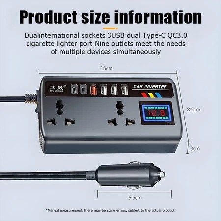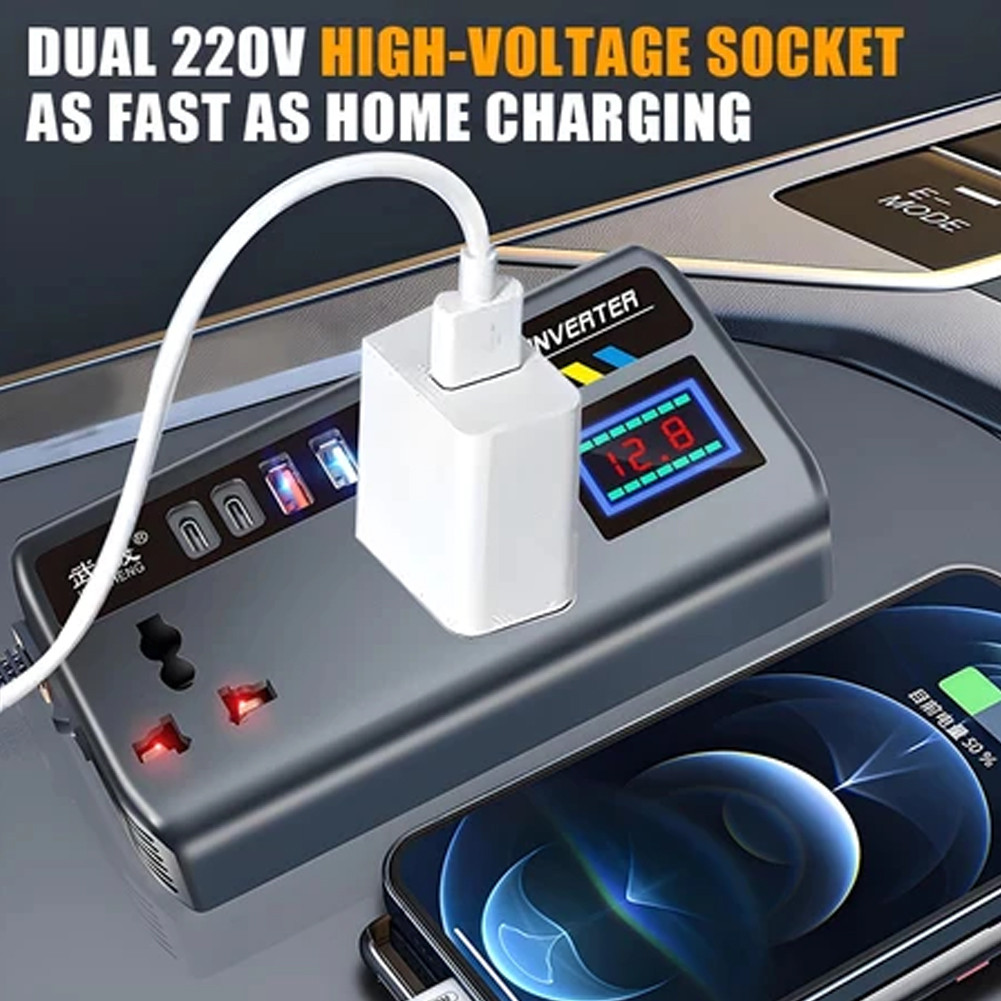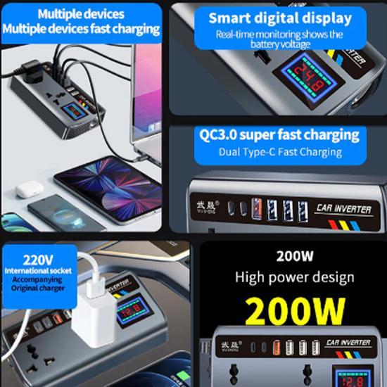 200W Universal Car Power Inverter 12V/24V to 220V Smart Car Power Converter AC QC3.0 USB-C Fast Charging LCD Display Auto Inverter for Car Refrigerator/Laptop