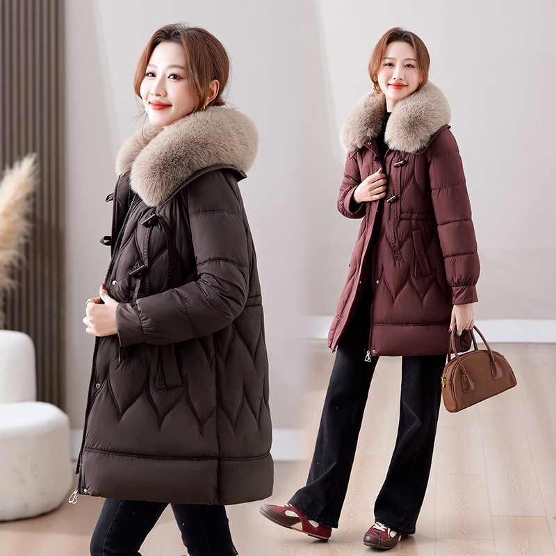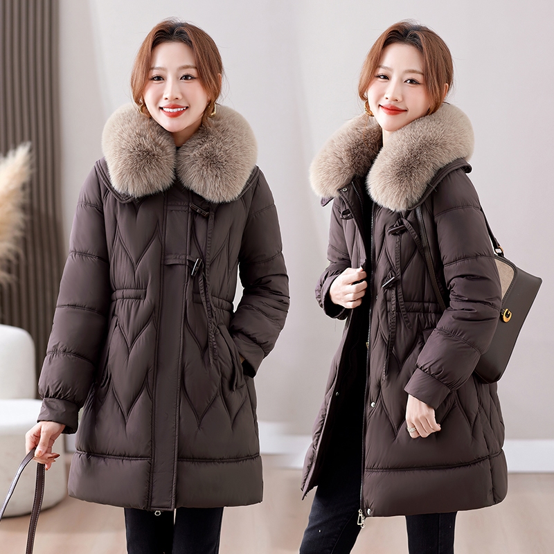 [High-Quality Material M-2XL Wear 45-80kg] Women's Winter Long Suede Fleece Collar Down Cotton Windproof Waterproof Plus Size Cold Resistant Warm Thickened Jacket Coat